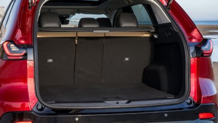 Pero no es la única cota en la que el nuevo CX-5 ha crecido, puesto que el maletero ha pasado de tener 522 litros a 583, con lo que ha aumentado en 61 litros. Por su parte, si se abaten los respaldos de los asientos traseros, la cifra asciende a 2.019 litros, 381 más que el modelo previo. Cabe mencionar que la profundidad del suelo de carga se ha ampliado en 45 mm.