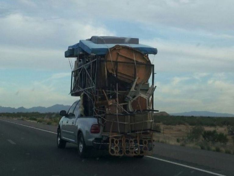 Algunos de estos conductores han decidido realizar mudanzas, transportar mercancías o desplazar un vehículo averiado, sin recurrir a los sistemas de transporte habilitados para ellos, como son camiones o furgones de mudanza. En muchas imágenes aún me pregunto con han sido capaz de cargar un vehículo sobre otro sin poner en riesgo la integridad del que soporta tal carga. La capacidad humana no conoce límites. No te pierdas la galería.