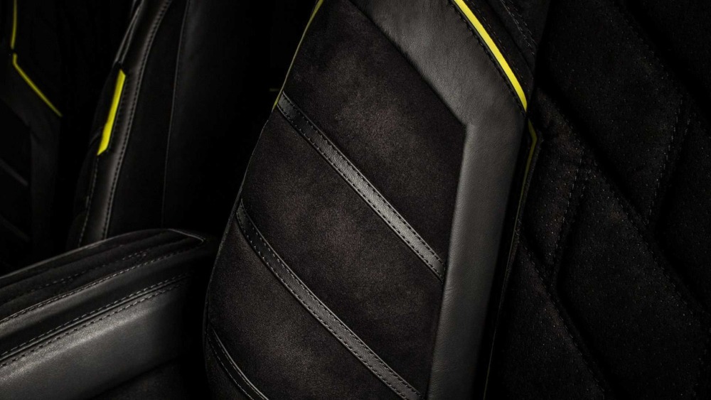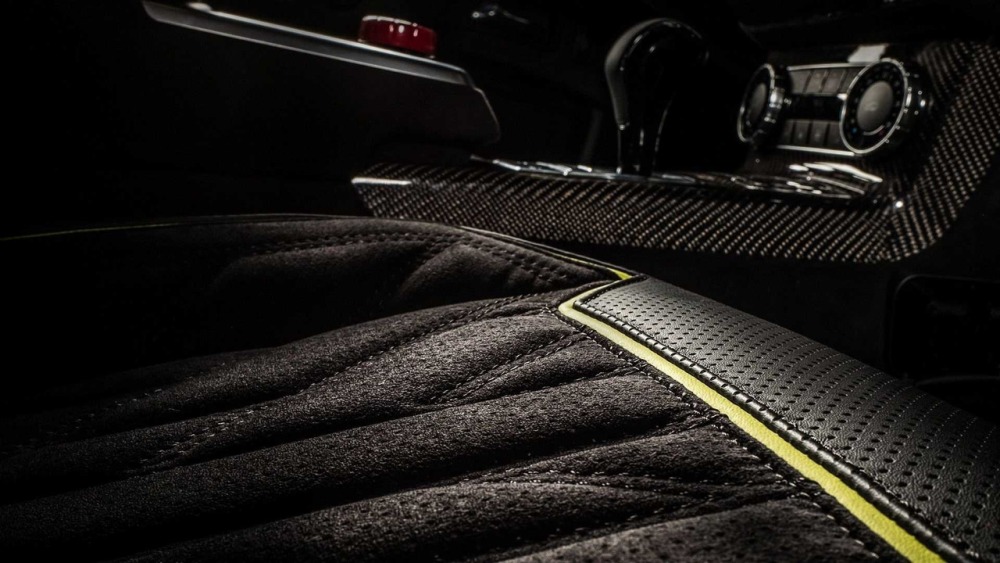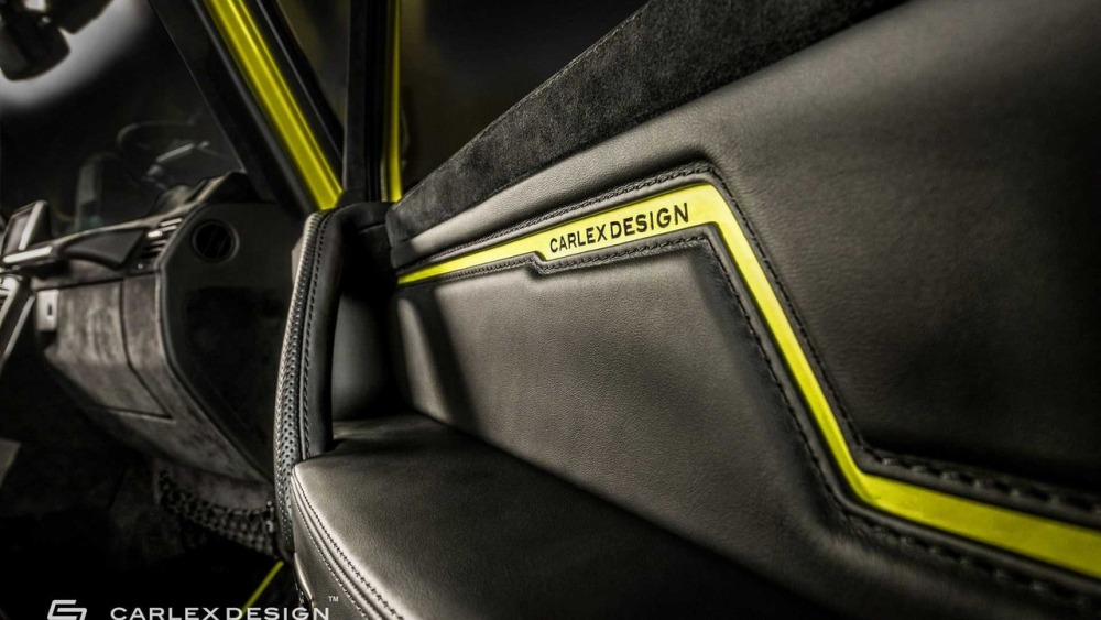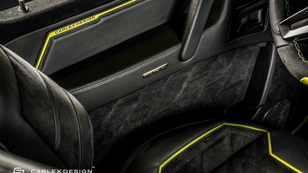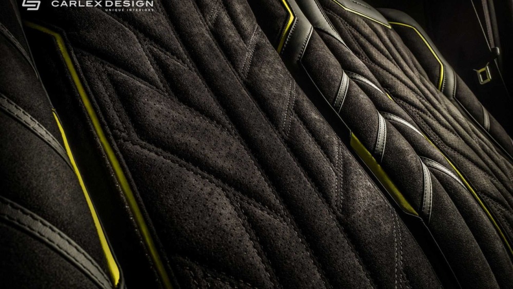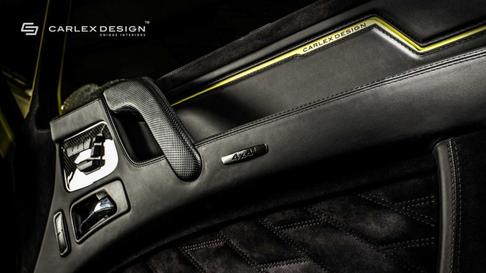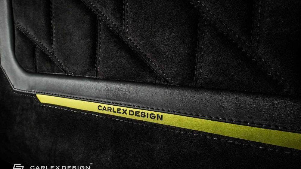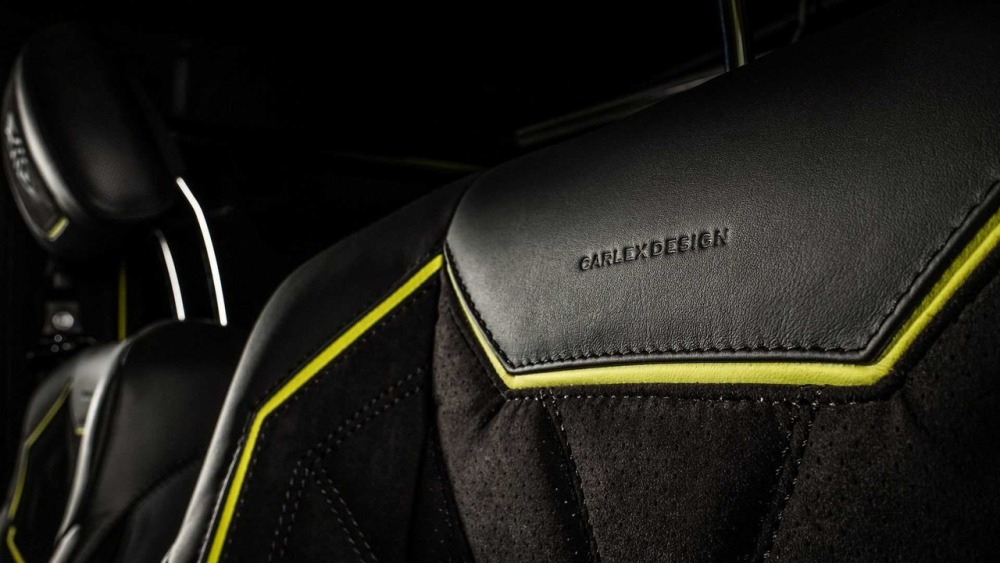 Carlex asegura que el objetivo principal cuando se trabaja en el interior de este G500 4x4² es crear “un aspecto deportivo y moderno con acentos aludiendo al color de la carrocería”. La mayoría de las superficies en el habitáculo están cubiertas de cuero Alcántara perforado con algunas inserciones de cuero tradicional. Además, las inserciones de fibra de carbono en el salpicadero están a la orden del día en esta preparación.