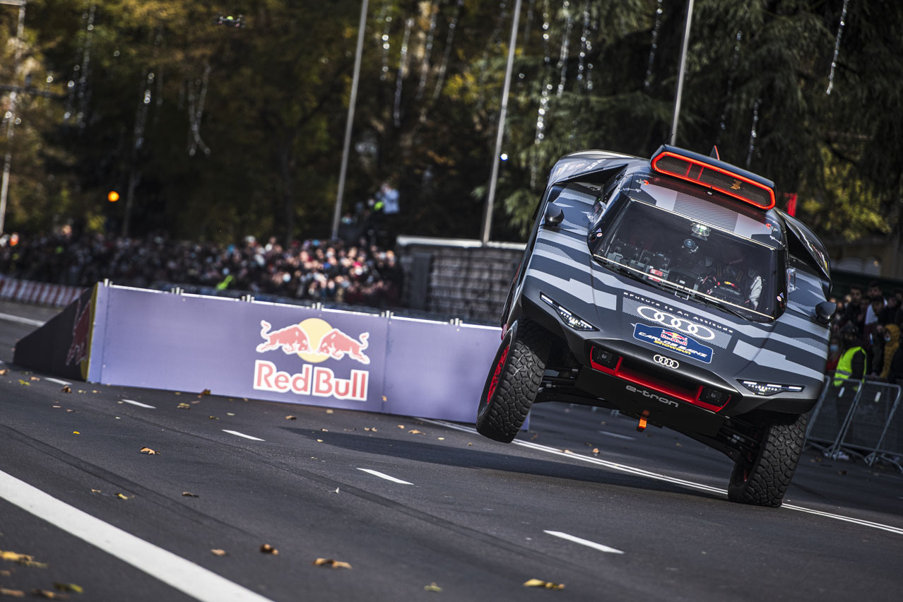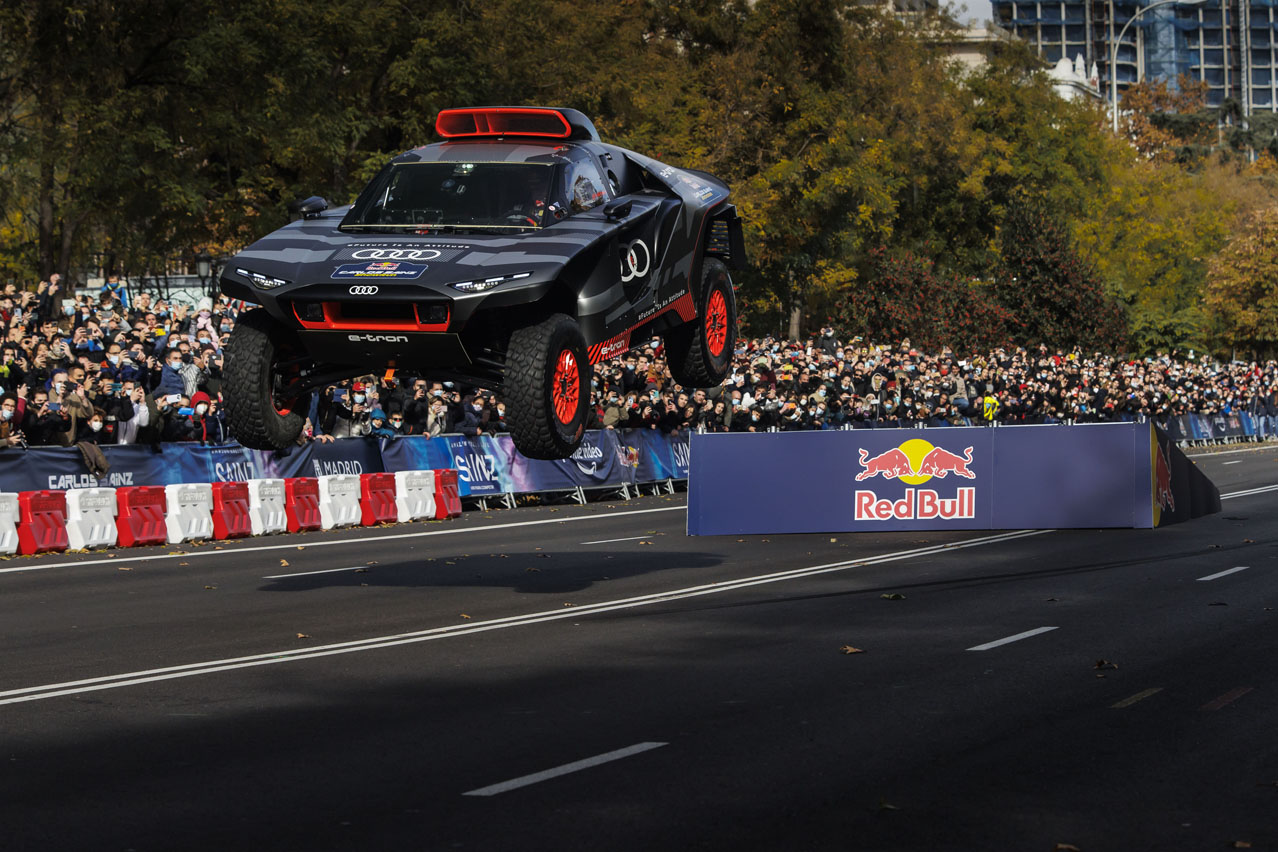 El acto lo ha cerrado con el Audi RS Q e-tron (toda la info), el vehículo eléctrico con el que Carlos Sainz intentará hacer de nuevo historia en el Dakar, la prueba más dura del mundo. El piloto español ha querido que la primera vez que se mostrara el coche en movimiento haya sido en Madrid.
