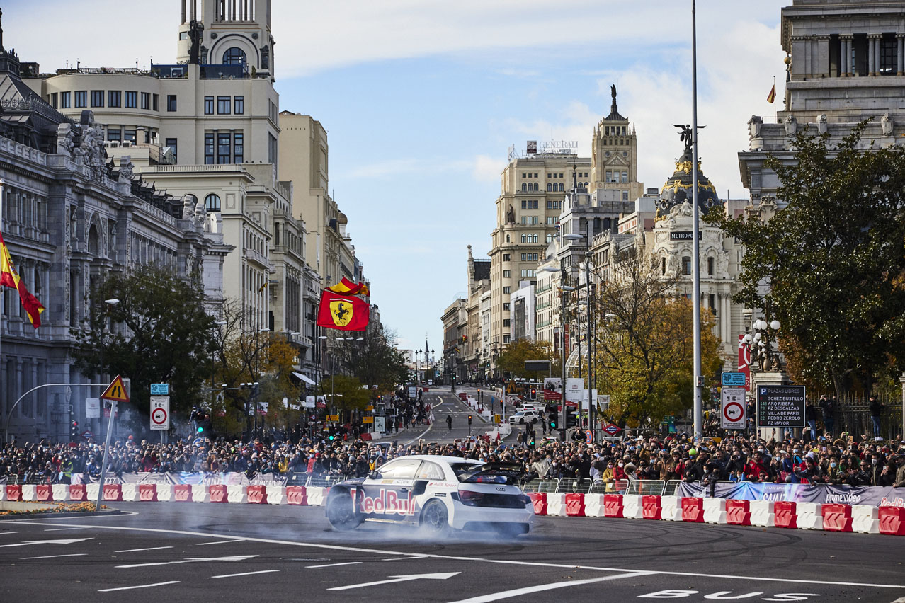 El primero de Ingolstadt es con el que la firma alemana ha conquistado el mundial de Rallycross y, probablemente con el que con su sonido y sus explosiones más ha calentado la fría mañana. El segundo es uno de los coches del Grupo B más admirado y, según ha manifestado Luis Moya, su fiel escudero en sus andanzas por el WRC, uno de los vehículos que siempre ha deseado conducir Sainz. Pues bien, el Quattro ha conseguido que todo el Paseo de Recoletos, desde la estatua de Cibeles hasta la plaza de Colón, retumbe.