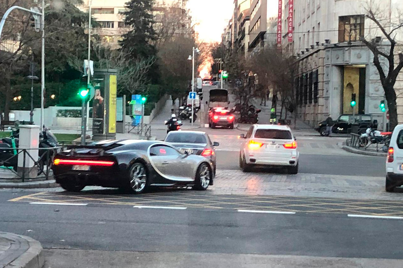 En este caso, lo vemos por Madrid con su Bugatti Chiron (prueba), uno de los coches más potentes y rápidos del mundo, equipado con un motor de 16 cilindros en W y 8.0 litros, con cuatro turbocompresores que produce 1.500 CV y 1.600 Nm de par máximo. Solo necesita 2,5 segundos para alcanzar los 100 km/h desde parado y tiene una velocidad máxima autolimitada a “solo” 420 km/h. ¿Precio? Unos 2,5 millones de euros.