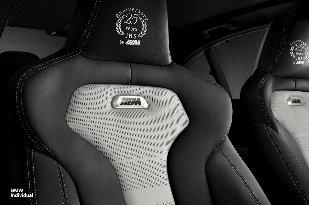 En el habitáculo también encontramos diferencias, como la tapicería de cuero Merino de alta calidad en acabado bitono y con costuras de contraste, o como el freno de mano o la parte baja del salpicadero, que cuentan con un bordado específico con el logotipo M. Sobre los reposacabezas de los asientos delanteros han incorporado otro bordado que indica que se trata de una celebración de su 25 aniversario y sobre el que también han añadido las iniciales del cliente.