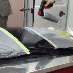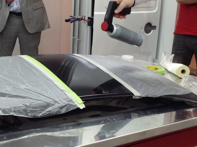 El Paint Defender fue, sin duda alguna, uno de los productos que más llamó nuestra atención durante la visita a las instalaciones de la compañía en Madrid. Se trata de un spray con el que podemos pulverizar un líquido -en la imagen superior, puedes ver el proceso de aplicación-, que se distribuye automáticamente de forma uniforme sobre la chapa, formando una película protectora completamente transparente.