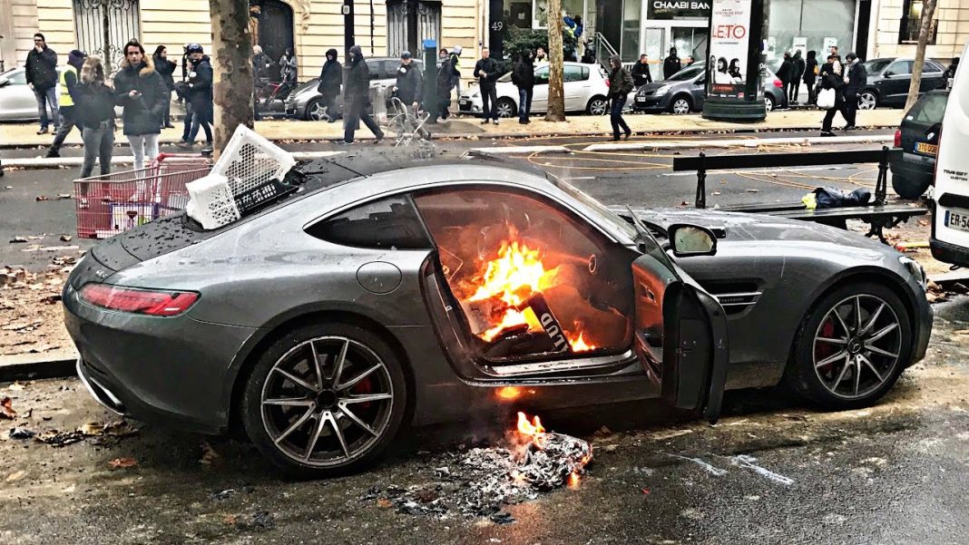 Además del comercio, los coches de lujo también son uno de sus objetivos. Como podrás ver en estos vídeos, estos manifestantes destrozan y vuelcan en París un Porsche 911. En la misma ciudad, un Mercedes-AMG GT S (prueba) también sufre la ira de este movimiento. Ni si quiera un Range Rover Sport con matrícula diplomática se libra de él.