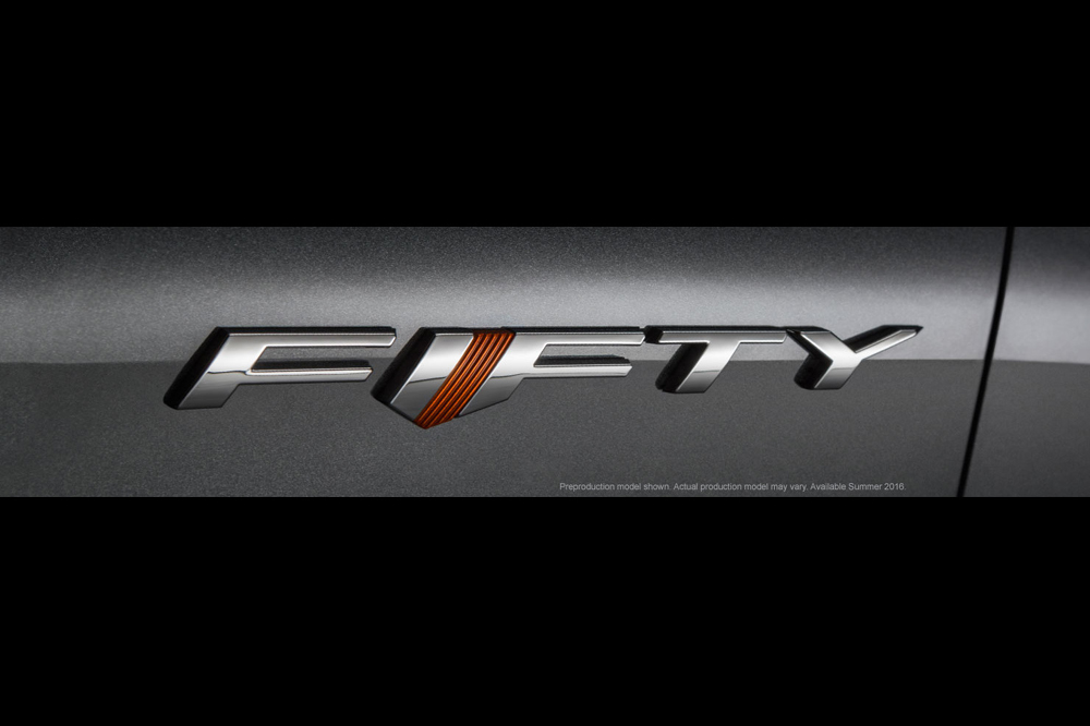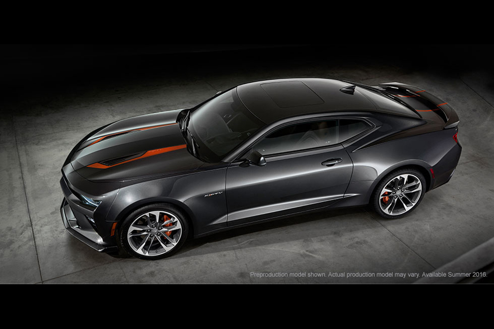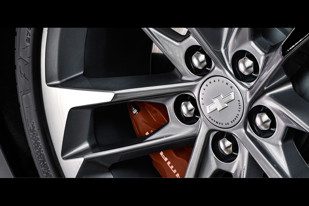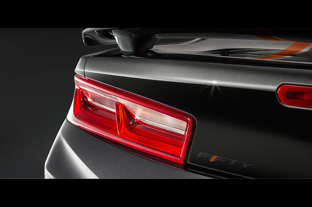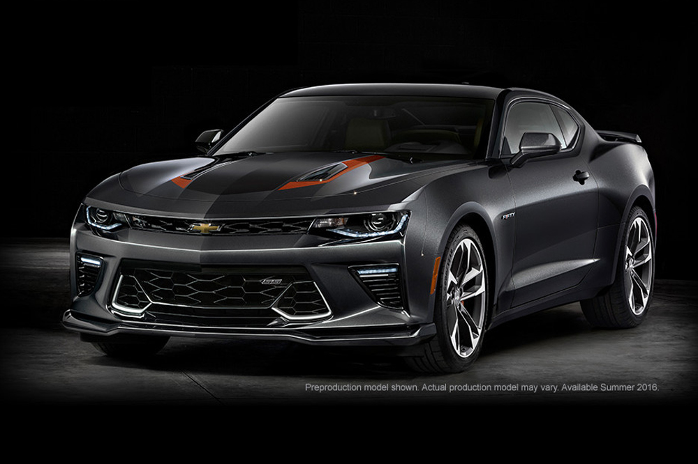 El Camaro 50th Anniversary Edition está desarrollado sobre la base de la sexta generación del famoso modelo, el Chevrolet Camaro 2016. Cuenta con multitud de elementos específicos, como el color de su carrocería, la parrilla delantera, las llantas de aleación de 20 pulgadas de diámetro, las pinzas de freno pintadas en color naranja o las líneas decorativas que recorren el capó y la tapa del maletero. Además, incorpora de serie el paquete estético opcional RS, que añade pilotos de LED, unos faros delanteros diferentes y un pequeño alerón trasero.