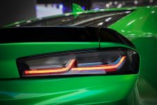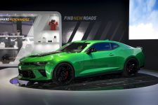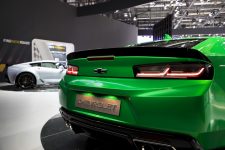 Construido sobre la base del Chevrolet Camaro 2016 con motor V8, este Camaro Track Concept se distingue visualmente de los modelos de serie primero en el color de su carrocería, un verde satinado que contrasta con los adhesivos negros que hay en el capó y techo así como con las llantas de aluminio de 20 pulgadas de diámetro, que también están rematadas en negro. Bajo su capó encontramos el bloque 6.2 V8 con 453 CV y 617 Nm de par, mecánica que en este caso está asociada a una caja de cambios automática de ocho velocidades.