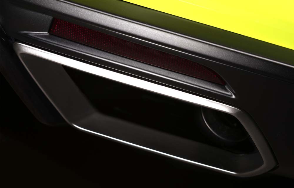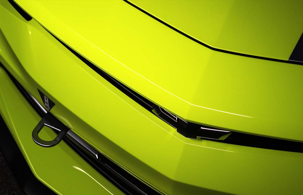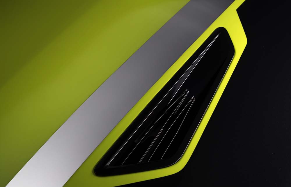 Pero si sus modificaciones técnicas son destacadas, también lo es su apariencia. Empezando por el amarillo flúor de su carrocería que se combina con los colores Perla Níquel de las bandas del capó y con el Carbon Flash Metallic satinado de las rejillas de ventilación de la tapa del motor, los estribos laterales y el difusor trasero. Redondea el conjunto unas llantas de aluminio de 20 pulgadas con neumáticos Goodyear 285/35 R20.