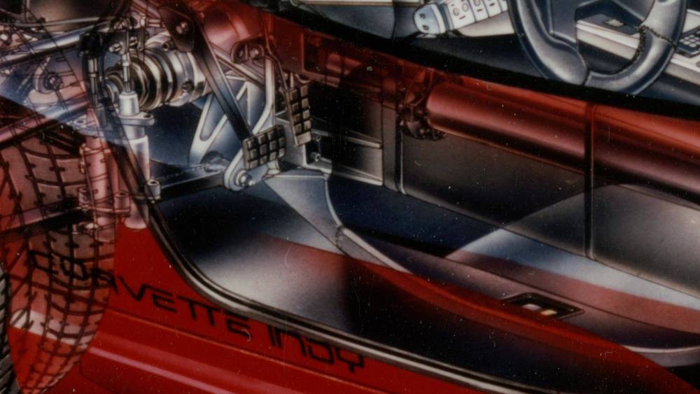 Jack Schwartz y su equipo recibieron luz verde para iniciar el proyecto del Corvette Indy a finales de 1985, pasando de un modelo de arcilla a un vehículo de exhibición en tan solo seis semanas. Equipaba un motor V8 biturbo de 600 CV con 2,65 litros de cilindrada montado en disposición central, detrás del asiento del conductor, pantallas montadas en las puertas para controlar el climatizador y el sistema de audio, ejes direccionables, una pantalla para el cuadro de instrumentos y un sistema de navegación que llegaba años antes de que los satélites de posicionamiento fueran legalizados para uso civil.