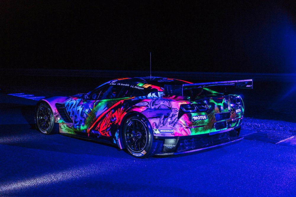 Sin duda será uno de los coches más llamativos durante la larga prueba de resistencia. El Corvette de Larbre Competition brillará en la noche de las 24 Horas de Le Mans 2017 gracias a su peculiar decoración que brilla en la oscuridad. En lugar de recurrir a los típicos sponsors y números, el equipo ha contratado los servicios del grafitero Ramzi Adek para crear un producto que llame la atención en el famoso circuito.