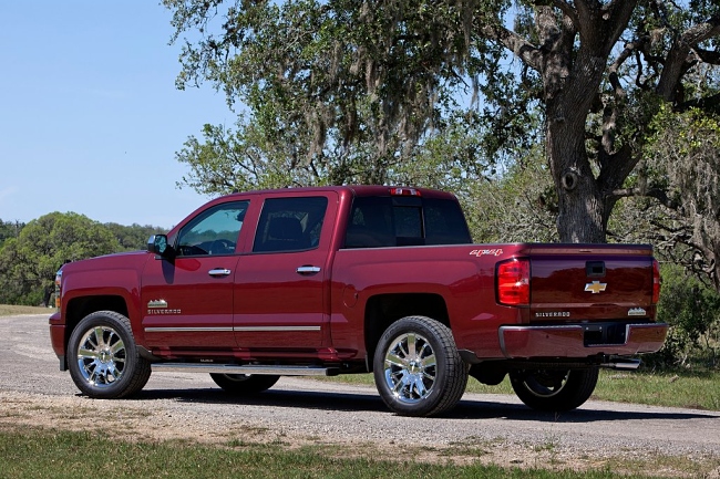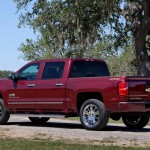 El nuevo Silverado High Country toma como base la carrocería ‘Crew Cab’ de cuatro puertas, sobre la que añade numeroso elementos cromados, como los listones de la parrilla delantera. Además, cuenta con faros halógenos y parachoques pintados en el color de la carrocería. Las llantas de aleación de 20 pulgadas –esa es su medida, aunque con lo grande que es el coche, no lo parezcan- están envueltas por neumáticos en medida 275/55 R20.
