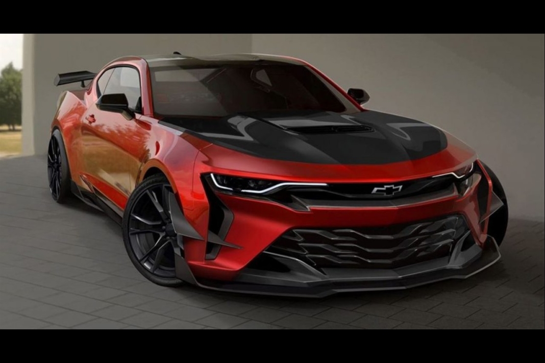 La imagen muestra detalles interesantes como los faros delanteros de la nueva generación del Chevrolet, una parrilla más baja, una ancha toma de aire frontal, splitter delantero de carbono, cannards delante de los pasos de rueda, un capó con una entrada de aire o un voluminoso alerón trasero.