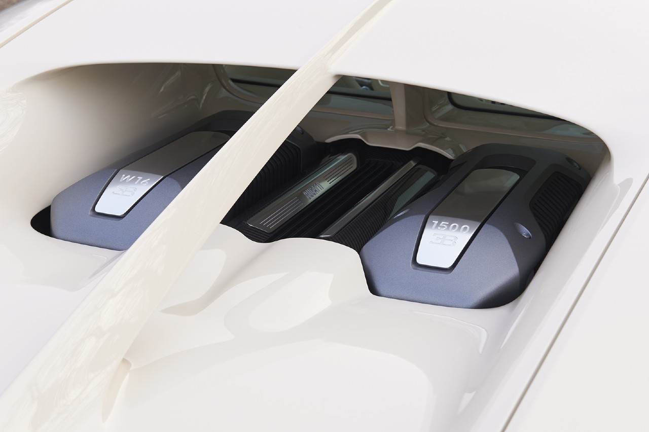 En el habitáculo la situación es similar, impregnando desde los asientos al salpicadero, pasando por el volante, el techo o las puertas, siempre con combinado con elementos metálicos. Especial atención merecen los paneles de las puertas, que presentan un patrón de caballos denominado ‘Courbettes’ y que ha sido elegido para representar los 1.500 CV que desarrolla el masivo motor 8.0 W16 con cuatro turbos del bólido.