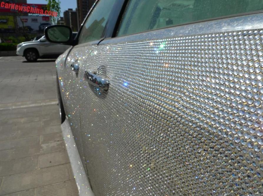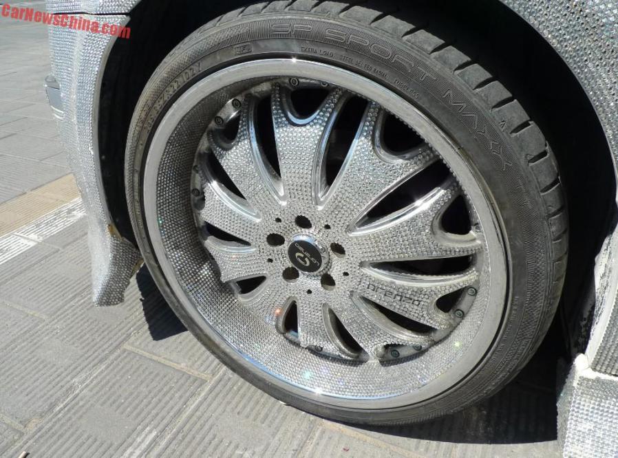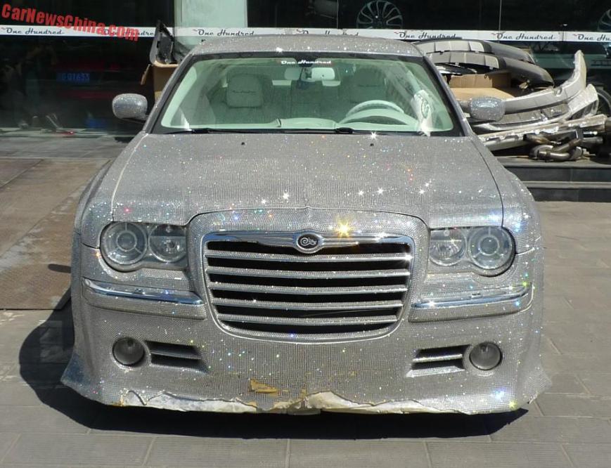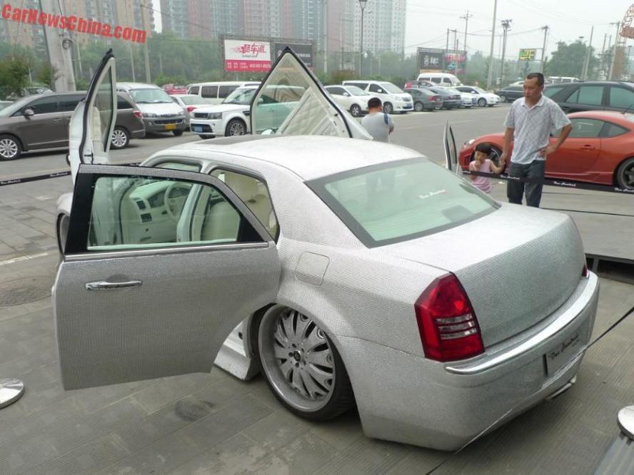 Este Chrysler 300 está cubierto de miles de piedras brillantes de plástico, sobre unas enormes llantas de 21 pulgadas que, como no podía ser de otra forma, también están decoradas con este barato material. En las puertas delanteras se han decantado por unas estilo tijera y en las traseras de tipo suicidio, además de un kit de carrocería completo que aumenta la anchura del vehículo en 150 mm.