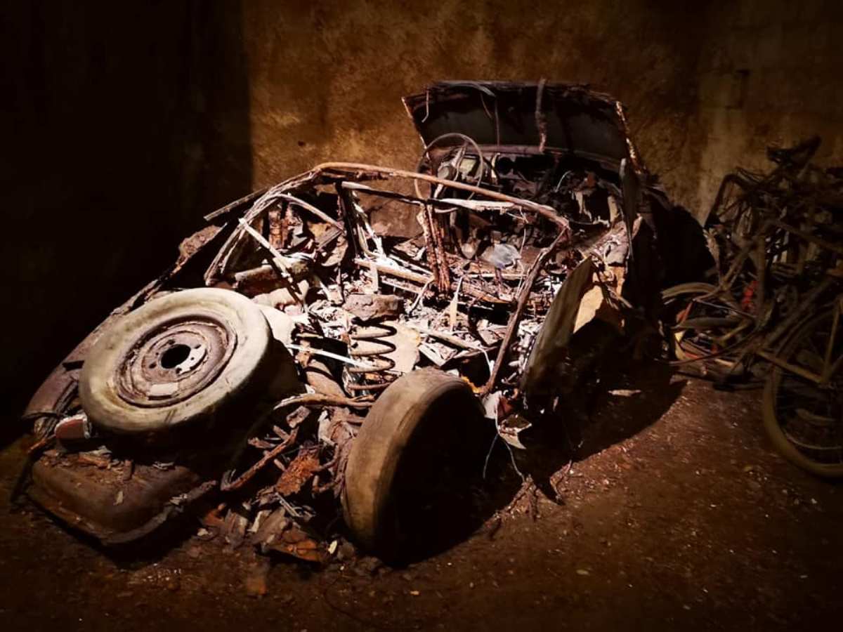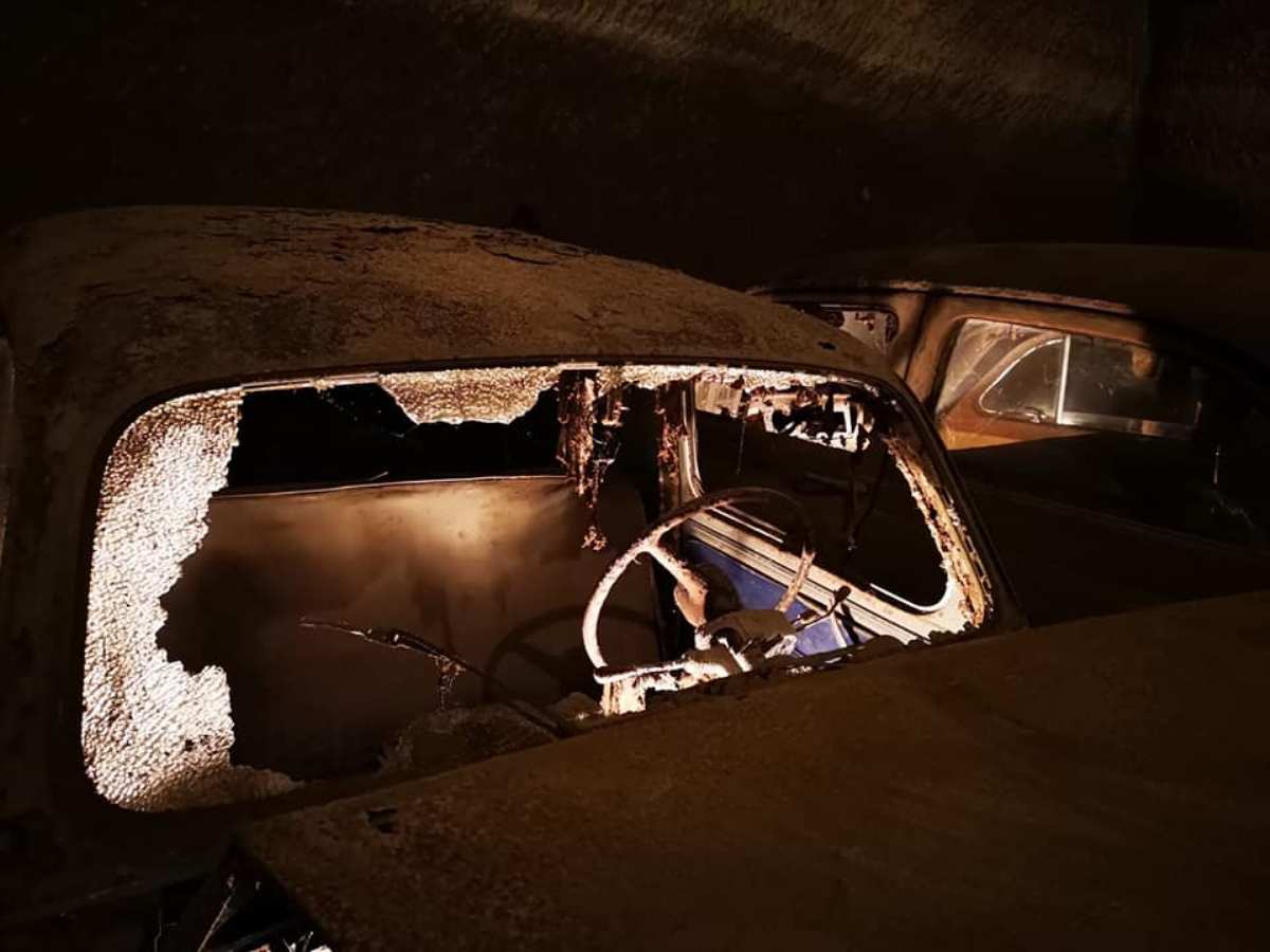Decenas de vehículos quedaría abandonados en el interior del túnel, concretamente en un pasaje amurallado que conducía a otro acceso al refugio antiaéreo. Esta gran habitación, convertida en un sarcófago improvisado para estos coches y motos abandonados, fue sellada y olvidada en la década de 1970 y redescubierta en 2007 durante una expedición llevada a cabo por geólogos.