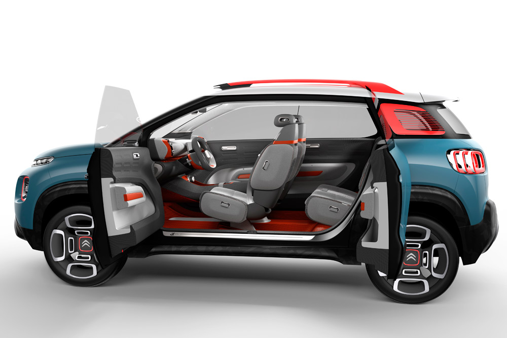 Para la realización de este estudio de 4,15 m de longitud, 1,74 m de anchura y 1,63 m de altura se ha tomado como base el Citroën C3 2017, un vehículo que ha tenido una muy buena acogida en el mercado. A diferencia de éste, el proto cuenta con una altura elevada, protecciones en los bajos en negro brillante y barras en el techo, elementos que le dan un aspecto más campero. Con toda seguridad serán incluidos en el vehículo de serie, no así sus llantas de aleación de 18 pulgadas, las cámaras exteriores, que funcionan como retrovisores; o las puertas con apertura de tipo suicida. No podían faltar los famosos airbumps, elementos más bien estéticos que sirven a la marca como seña de identidad, así como los faros a doble altura, todo ello montado por primera vez en el C4 Cactus.