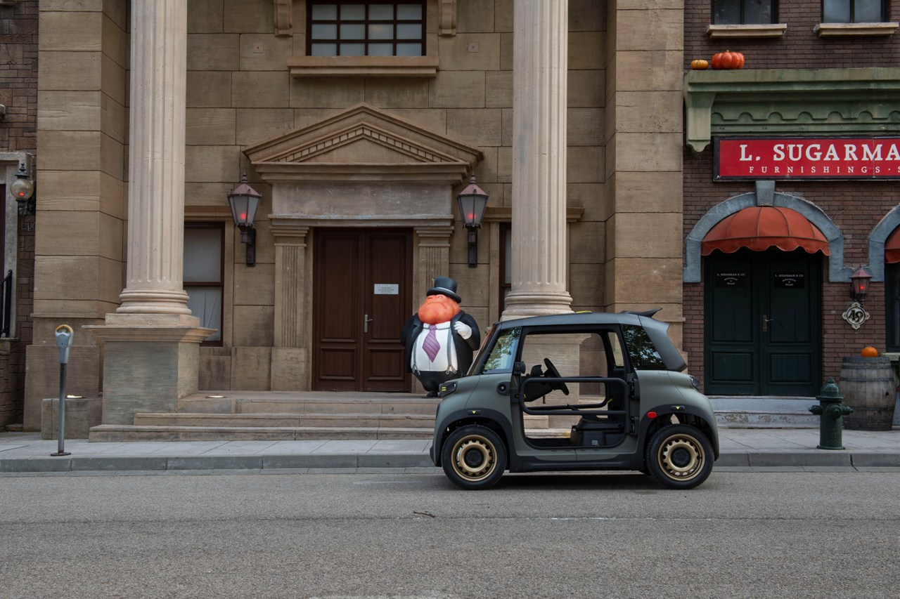 Otros elementos de su exterior son los paragolpes, la placa frontal y los protectores de los faros, los pasos de rueda y los faldones laterales, así como el alerón trasero. La carrocería del Citroën My Ami Buggy también cuenta con una capota de tela y una combinación de colores inspirada en “safaris y aventuras en la naturaleza”. En este caso, el exterior está terminado en color Khaki, combinado con detalles en Amarillo brillante.