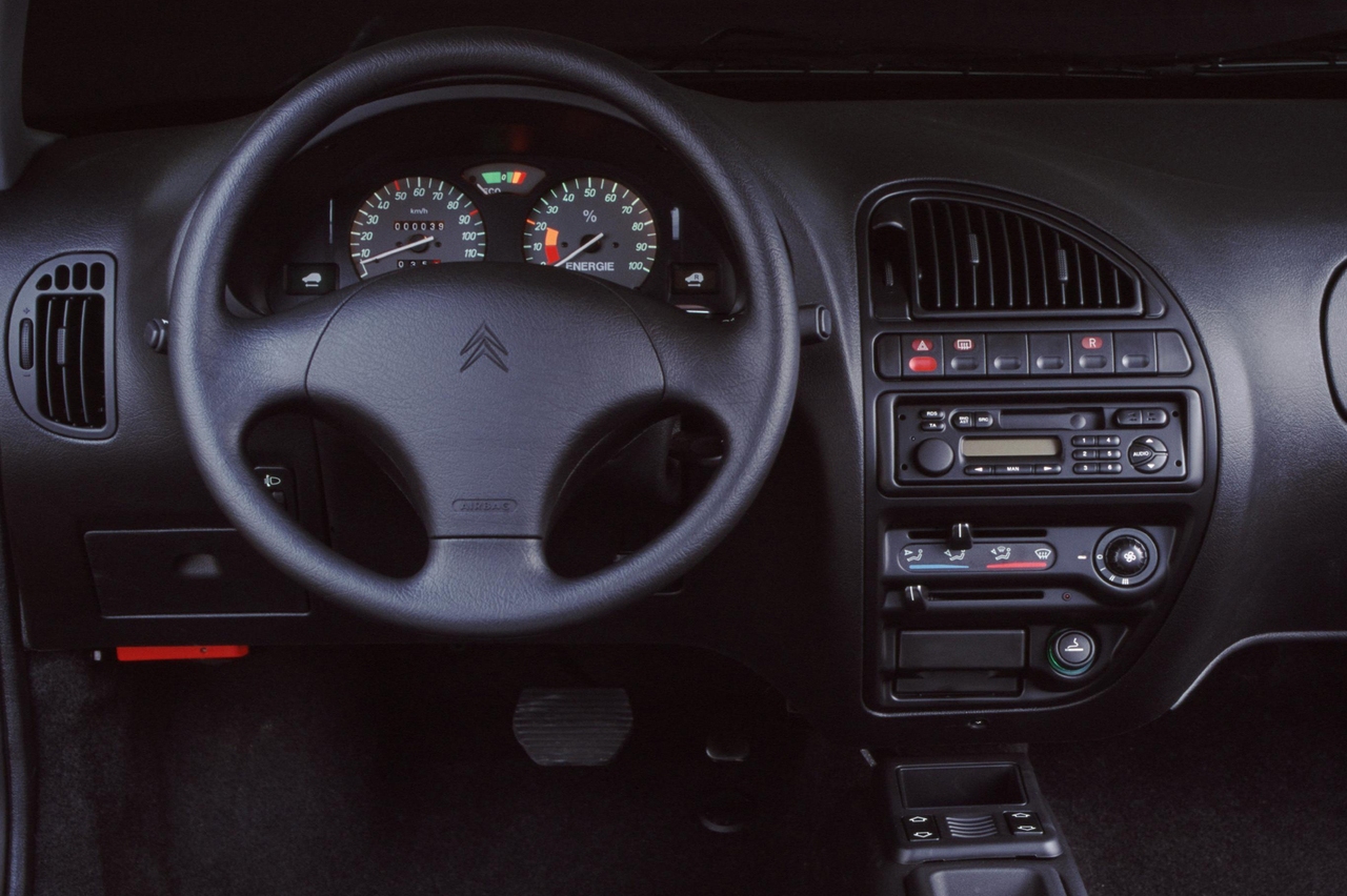 Citroën siguió la misma tónica en el interior del utilitario eléctrico. La cabina era la misma que se podía encontrar en las versiones estándar del Saxo, pero se reemplazó el cuentarrevoluciones por un medidor del nivel de carga de la batería. Cuando la aguja llegaba a la zona naranja (10%-20%), era recomendable recargarla. Si entraba en la zona roja (0%-10%), la batería estaba prácticamente agotada. Por último, se eliminó la palanca de cambios y el pedal de embrague, mientras que, para accionar la marcha atrás, era necesario presionar un botón ubicado en el salpicadero.