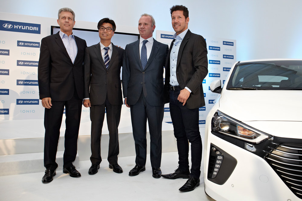Joan Miquel Malagelada, director de Marketing de Hyundai, ha declarado: “El Nuevo Ioniq es la gran apuesta de Hyundai para afrontar los retos de la movilidad del futuro y un importante hito en la estrategia de sostenibilidad de la marca. Por primera vez se lanza al mercado un mismo modelo con tres tecnologías: híbrida, eléctrica y plug-in”. Asimismo, sobre el coche de Diego Simeone y su fichaje con Hyundai, Malagelada ha añadido: “Estamos muy orgullosos de la colaboración con Diego Simeone, que representa perfectamente los valores de nuestra marca: liderazgo y capacidad de superación. Además al igual que el Ioniq, Simeone es un ejemplo de innovación y voluntad de desafiar lo establecido”.