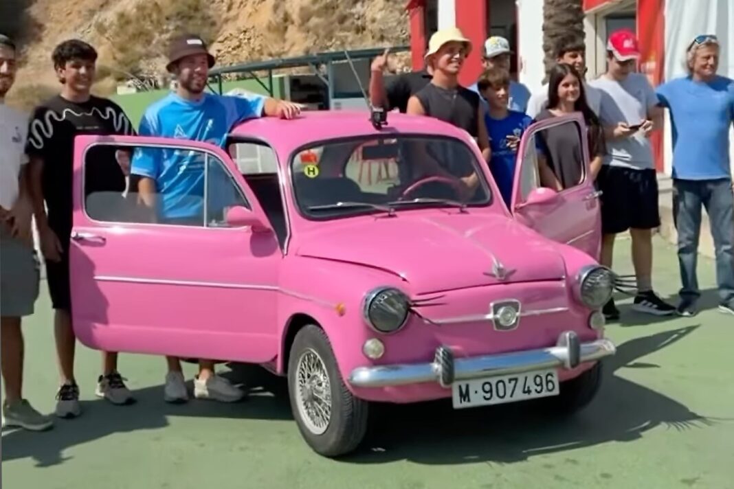 Lando Norris es un máquina. Y no lo digo por los GP que gana en Fórmula 1, sino porque allá donde va se mueve con un coche pintón. Si en Japón se presentó al circuito con un Nissan Skyline GT-R personalizado por Liberty Walk, ahora, en Marbella, ha hecho lo propio con un Seat 600 E rosa con pestañas. Esta generación del pelotilla se mueve gracias a un motor de 767 centímetros cúbicos que rinde 25 CV.
