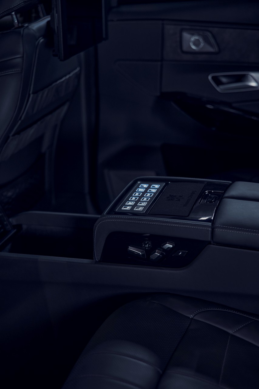 En el interior, los asientos traseros son ahora una pareja de asientos independientes revestidos en cuero Negro Basalto que están acompañados de un techo interior en Alcantara. Además, hay cargadores inalámbricos y conexiones USB, así como un portadocumentos central.