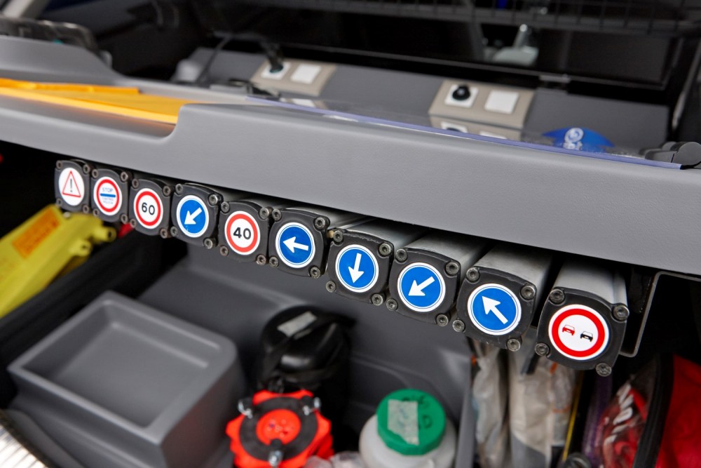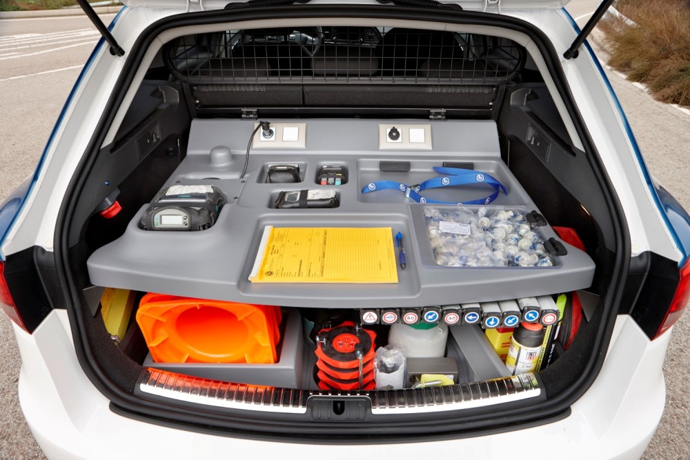 El SEAT León ST (prueba) es el vehículo patrulla de tráfico de los Mossos, el cual ha sido diseñado con un compartimento de carga muy práctico y funcional. El maletero está totalmente personalizado para el control del tráfico y los diferentes controles a los conductores. En él encontramos una estructura a tres niveles, en el que el primero dispone de una bandeja para almacenar elementos de uso habitual con dos tomas de 20A y 22V. El segundo nivel permite almacenar las distintas señales de tráfico y el tercero reúne las herramientas de señalización, herramientas para reparar averías, extintor, cadenas y otros elementos. Por último, un puente de tipo LED permite integrar mensajes personalizados desde la cabina.