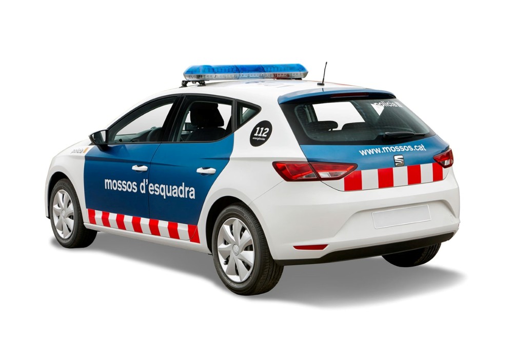 El SEAT León (prueba) es uno de los coches patrulla más utilizados por los Mossos d’Esquadra. Este vehículo cuenta con todo lo necesario para que los agentes puedan realizar sus funciones, además de la decoración específica y el sistema de sirenas e iluminación, el León cuenta con un maletero personalizado donde se disponen elementos diversos, como un extintor o un soporte para el cordón policial, mientras que también encontramos un sistema informático enmarcado para gestionar los recursos propios del vehículo.