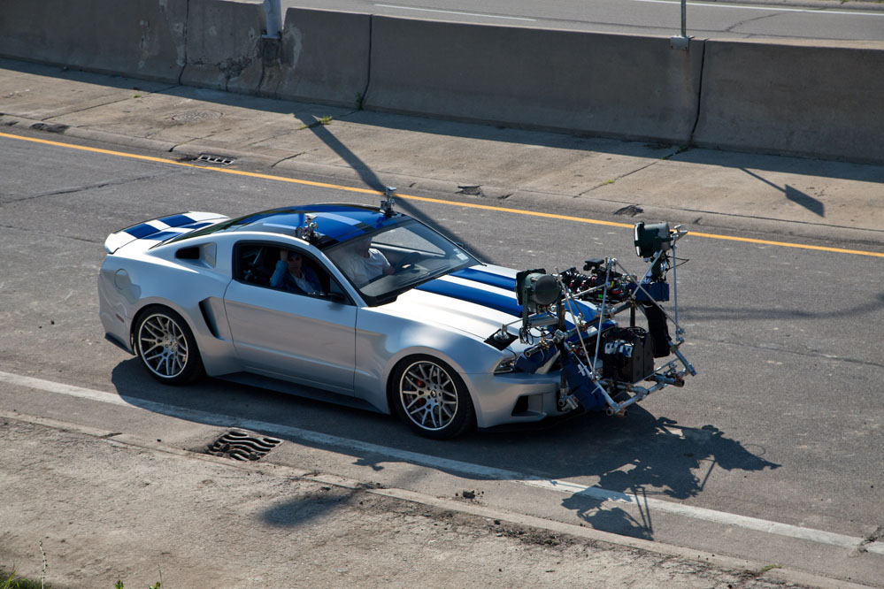 Además de los coches de la película Need for Speed que salen en pantalla, también hubo tres coches equipados con cámaras para rodar algunas escenas especiales: un Mercedes con un brazo telescópico de 7,32 metros, Porsche Cayenne empleado para remolcar o empujar los coches figurantes y un Mustang con un supermotor Saleen.