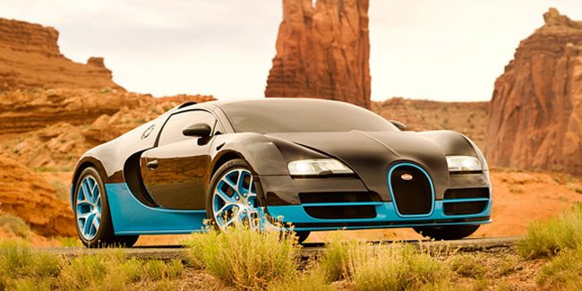 Las fotografías, tomadas en el set de rodaje de Monument Valley (Utah, Estados Unidos), muestran dos Autobots: el primero de ellos es un precioso Bugatti Grand Sport Vitesse, superdeportivo con motor W16 de 8,0 litros capaz de rendir 1.200 CV de potencia y 1.500 Nm de par máximo. Es capaz de pasar de 0 a 100 km/h en 2,6 segundos y de alcanzar los 410 km/h… ¡Vamos, un coche de otro mundo que ostenta el título de ser el sexto coche más rápido del Universo!