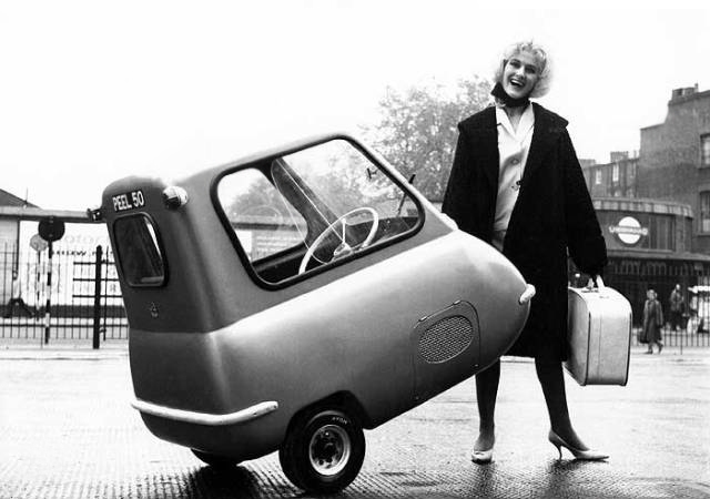 El Peel P50 no solo goza de ser uno de los pocos coches de tres ruedas fabricados, sino que hasta 2009 era el coche de producción en serie más pequeño del mundo. Era obra de Engeenering Company, con sede en la Isla de Man, estuvo en activo desde 1962 a 1965 y se vendieron casi 50 unidades de este simpático vehículo de una sola plaza, con una sola puerta y tres ruedas.