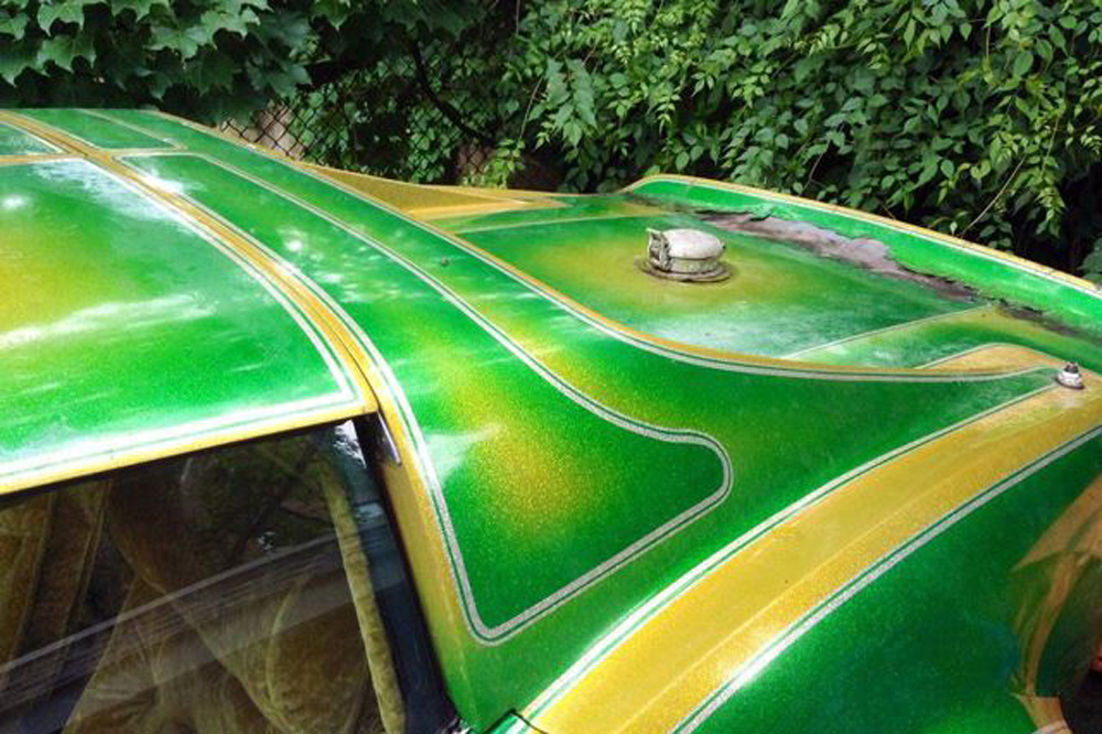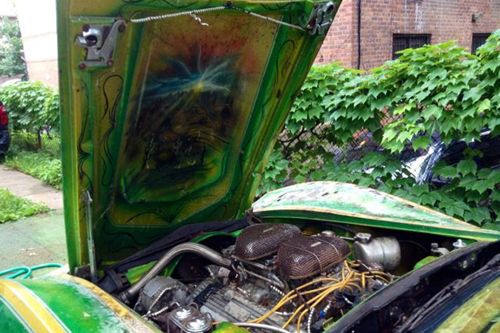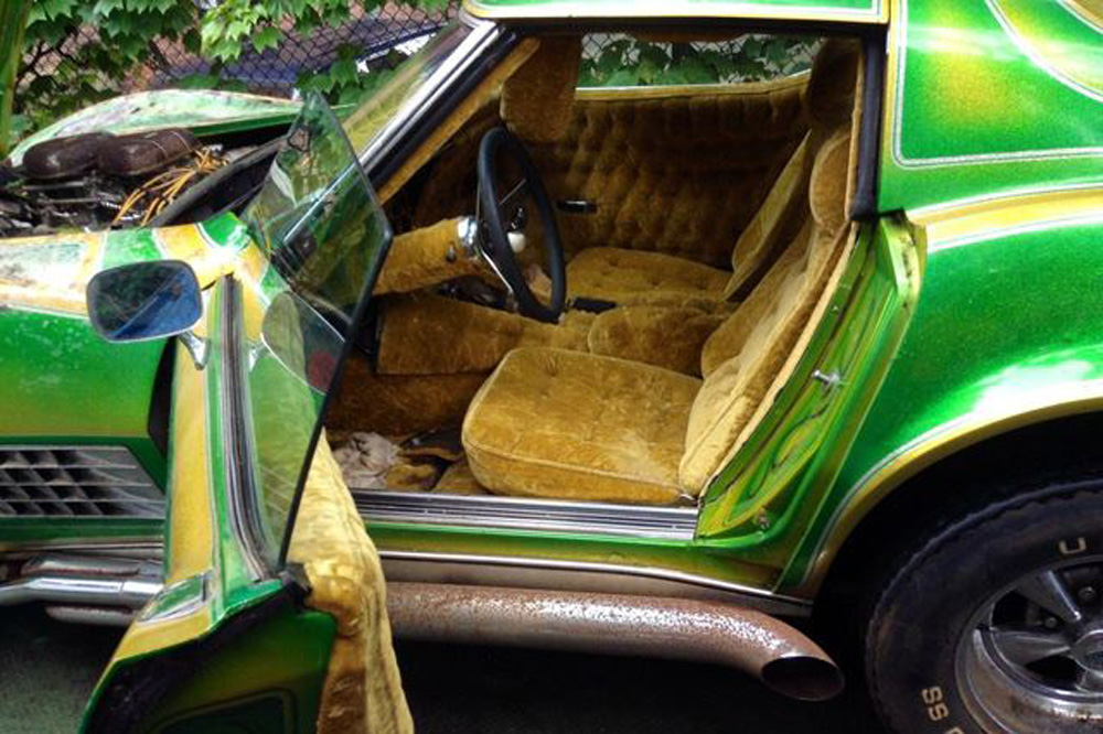 Decimos destrozar por no decir cómo joder un Corvette Stingray de 1971, ya que como puedes ver en la galería de imágenes, en algún momento desde que este Chevrolet salió de la cadena de producción hace ya 44 años alguien decidió redecorarlo. Si la carrocería pintada en una combinación de verde y amarillo, con llamas recorriendo el lateral y un dibujos desérticos pintados por todas partes, incluida la parte interior del capó, espera a ver el interior.