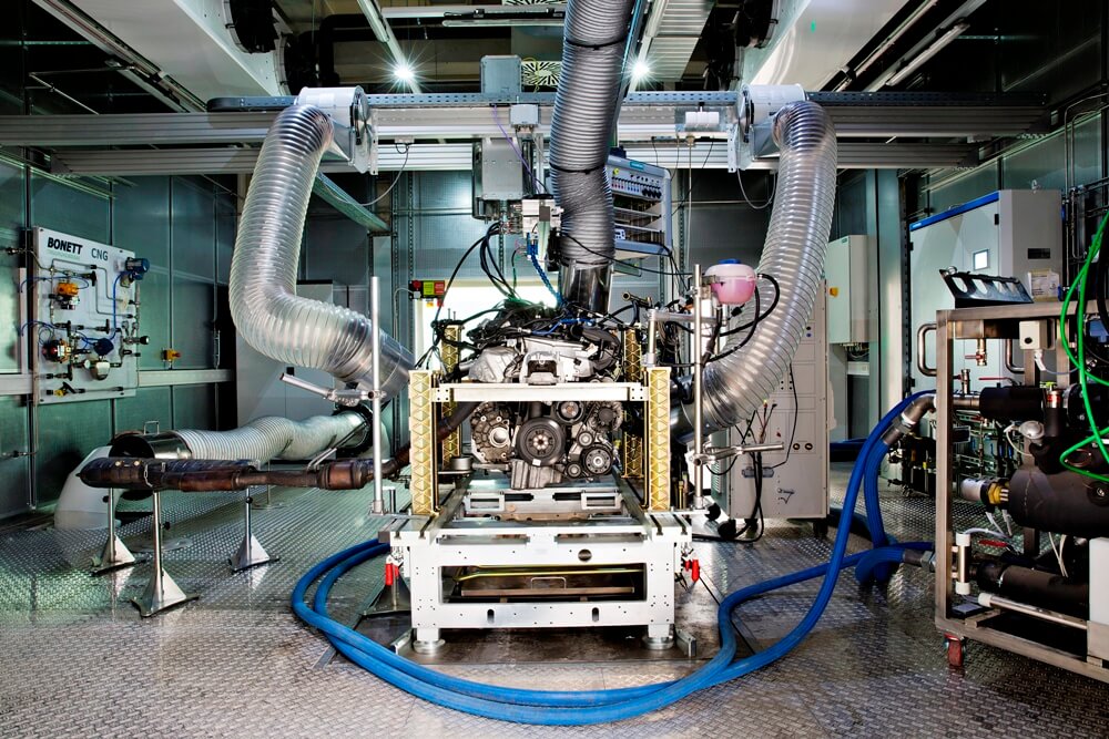 Un sistema de ventilación extrae los gases de escape y unos sensores analizan la composición de las emisiones del motor entre cada estación. Para proteger a los ingenieros, un cristal blindado “a prueba de balas” los separa de la habitación donde está el motor, mientras que, durante el test, el propulsor es monitoreado por un circuito de cámaras integradas. Los ingenieros vinculan el motor con un freno eléctrico y lo conectan a los dispositivos de medición requeridos, el suministro de combustible y el de refrigerante. La prueba se realiza mediante un sistema automatizado.
