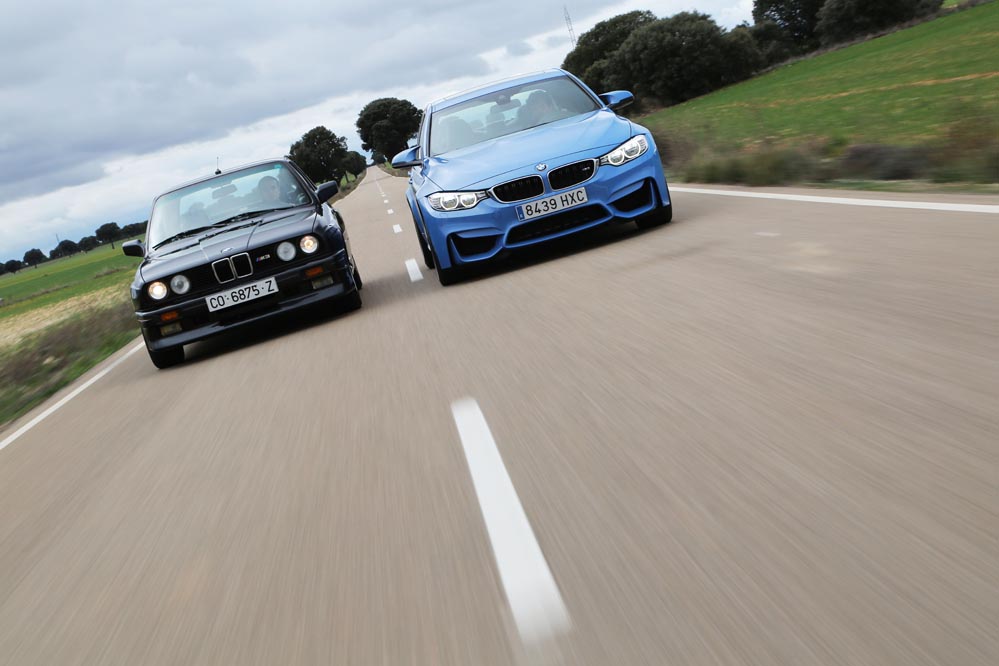 Llega el momento que llevaba esperando. Mi corazón se acelera sin haber puesto aún en funcionamiento el cuatro cilindros del BMW M3 E30, esa obra de arte que diseñó en tan solo dos semanas Paul Rosche, autor del motor BMW Turbo de F1 con el que Piquet ganó en 1983. Giro la llave del S14 de 2,3 litros y el bloque de Rosche cobra vida. El agudo sonido de su propulsor atmosférico se cuela en el habitáculo para despertar todos mis sentidos, algo que en ningún momento llega a ser molesto. Es más, atrae, enamora. Por su parte, el biturbo de seis cilindros del F80 suscita casi las mismas emociones, a pesar de ser mucho más bronco y de recurrir a los a los altavoces del equipo de sonido con el fin de excitarme.