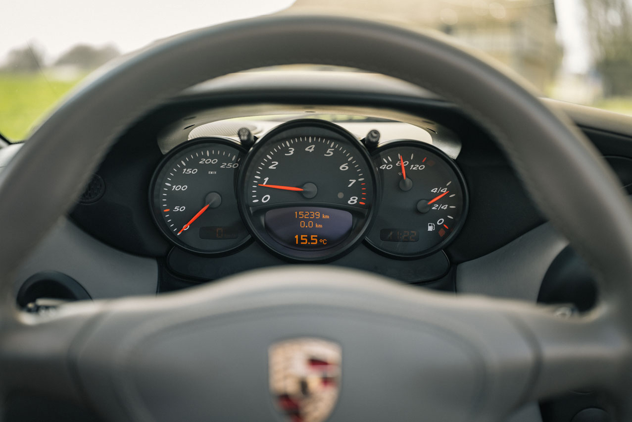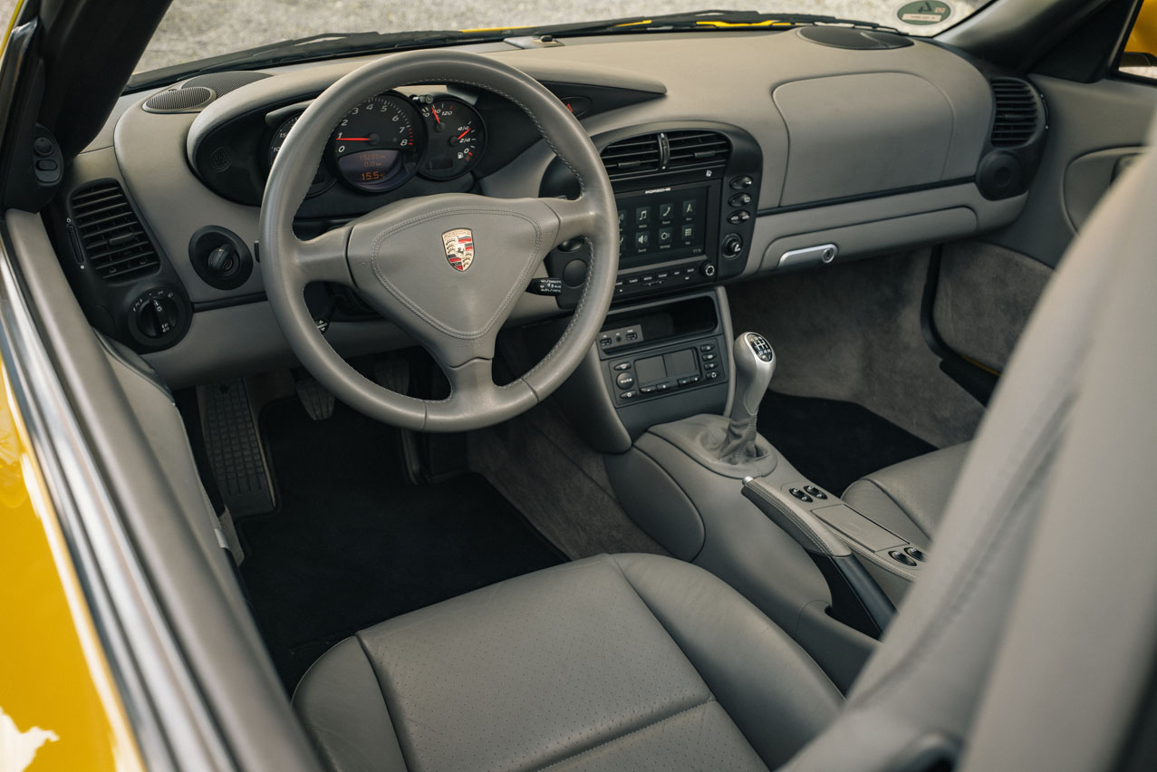 Hora de echarle el guante al Porsche Boxster 986 de 2002. El asiento está situado un poco más arriba y a pesar de no contar con unos asientos regulables en 14 posiciones como el 718, rápidamente se encuentra una posición de conducción muy buena. Donde le gana la partida es en comodidad, con un respaldo más mullido que hace que el del 25º aniversario parezca aún más duro.