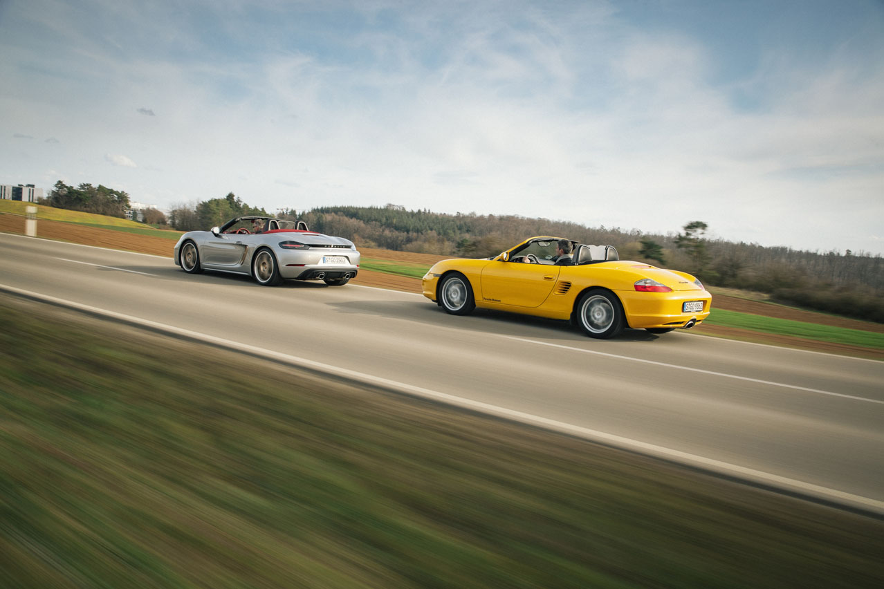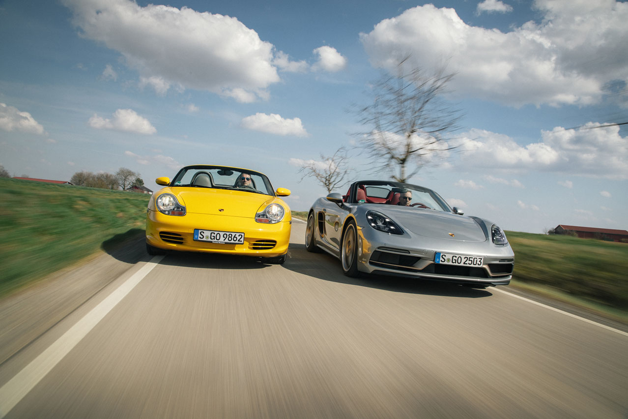 Con motivo de esa conmemoración tan especial, hemos podido juntar el precursor de la saga, el Porsche Boxster 986, y la edición que conmemora tal efeméride, el Porsche Boxster 25º Aniversario.