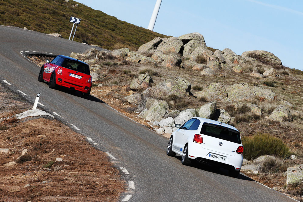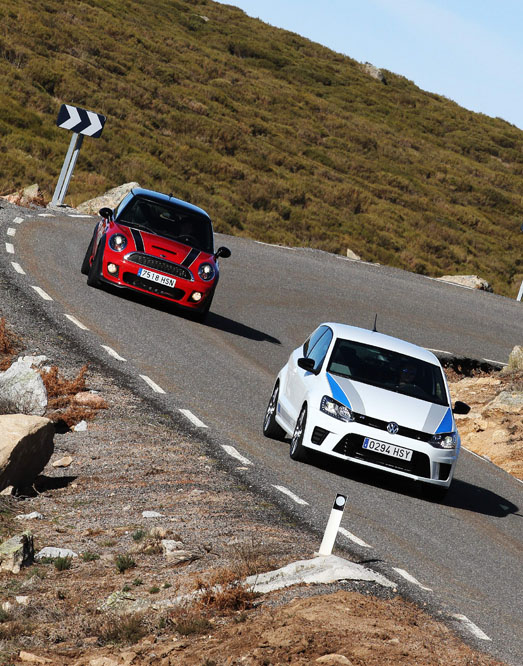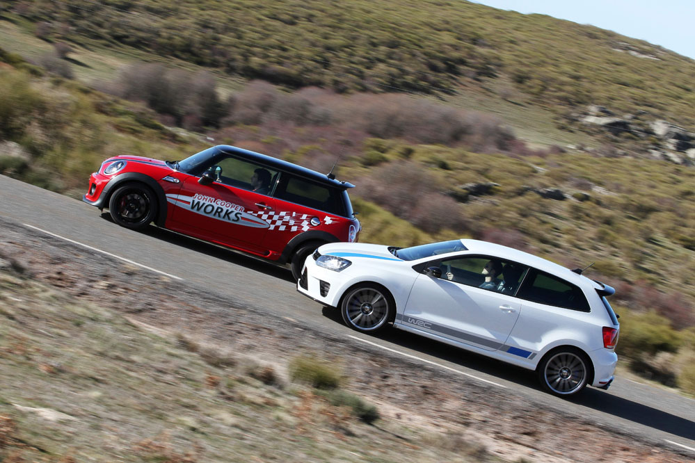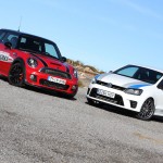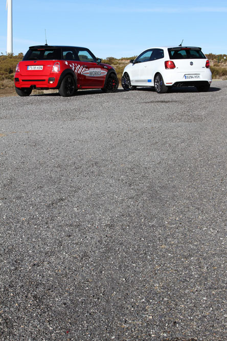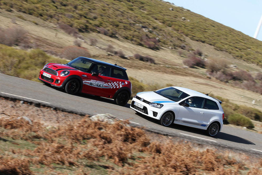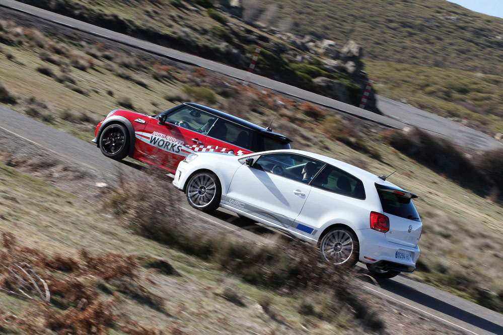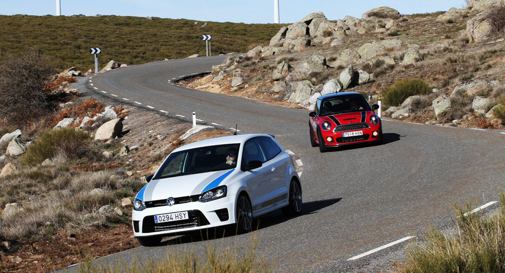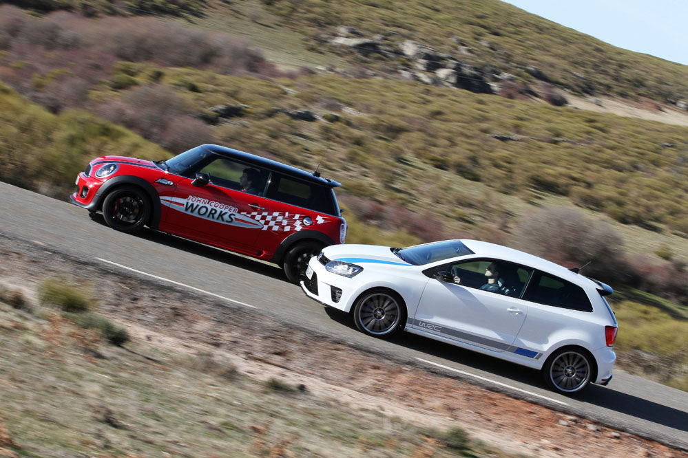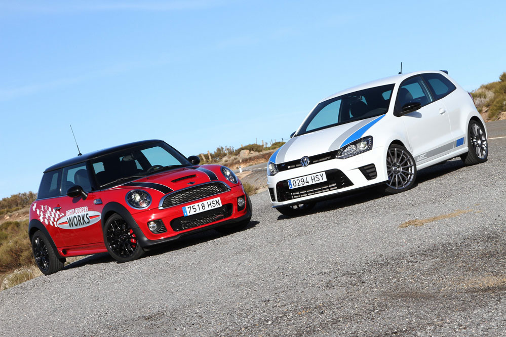 Hoy enfrentamos a dos auténticos cohetes de bolsillo, dos coches que bajo sus relativamente pequeñas carrocerías esconden potentes motores turboalimentados capaces de superar los 200 CV con margen. Son rápidos, divertidos, exclusivos, prácticos y caros, muy caros. Ya los hemos probado por separado (prueba Volkswagen Polo WRC R y prueba MINI JCW), ahora toca compararlos y ver qué diferencias hay entre uno y otro. ¿Con cuál nos quedamos? Sigue leyendo y lo averiguarás, pero ya os adelantamos que uno de los dos ha logrado conquistarnos.