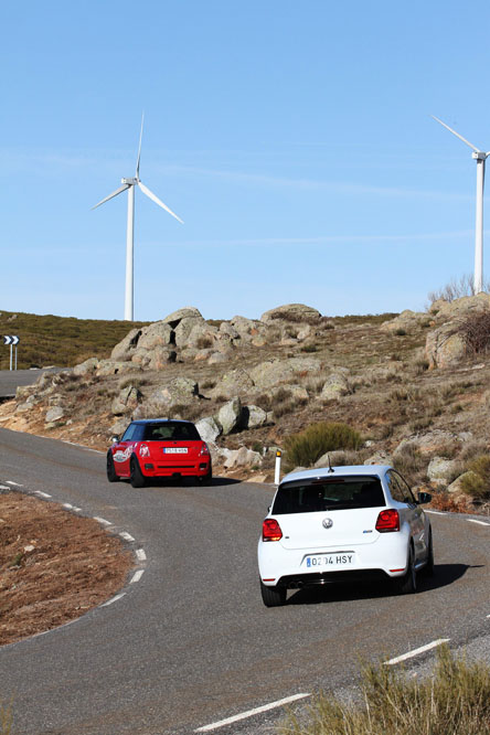 Frente a él, con una mirada mucho más simpática y un diseño fácilmente reconocible, encontramos al MINI JCW. Sí, ya sabemos que el MINI 2014 ya ha sido presentado (de hecho, ya hemos probado el MINI Cooper 2014); y sí, también sabemos que hay una variante más potente y radical, el MINI JCW GP, que al igual que el alemán, es una edición limitada -en este caso, a 2.000 unidades-. El problema es que  resulta mucho menos práctica que cualquiera de los dos coches que hoy comparamos, además es 10.000 euros más caro que su hermano pequeño y casi 7.000 euros más que el Polo, así que directamente lo descartamos.