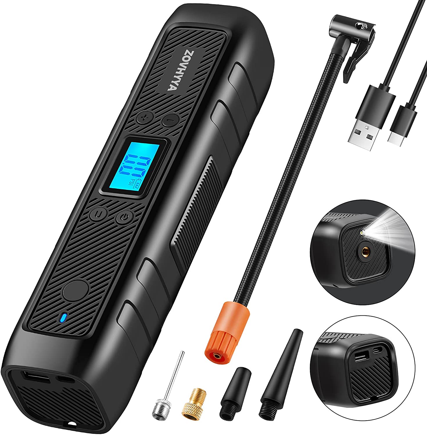 El compresor viene con varios accesorios para poder inflar otras cosas, como por ejemplo pelotas, bicis, flotadores... En una acampada o camping es un elemento que se vuelve imprescindible.
