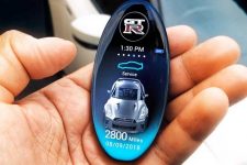 Pero esto no es todo. La llave conceptual ofrece información útil a los propietarios, como verificar la autonomía con el nivel de combustible actual, el nivel de aceite y el tiempo y los kilómetros restantes hasta el próximo servicio de mantenimiento. También hay tres botones físicos. El logotipo de GT-R del centro cierra las puertas, el de la izquierda abre el maletero y el de la derecha permite tocar el claxon.