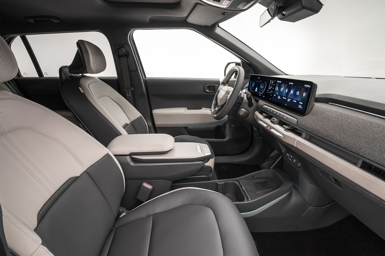 La imagen exterior del EV3 es prácticamente clavada a la que lucía el prototipo que nos lo anticipó allá por el año 2023, el KIA EV3 Concept, y lo mismo se puede decir lo mismo del habitáculo. Porque aunque varían algunos detalles, como el volante, en líneas generales es muy pero que muy parecido. Algo que sin duda gustará a los amantes del diseño en general y en especial, los que aprecien el minimalismo.
