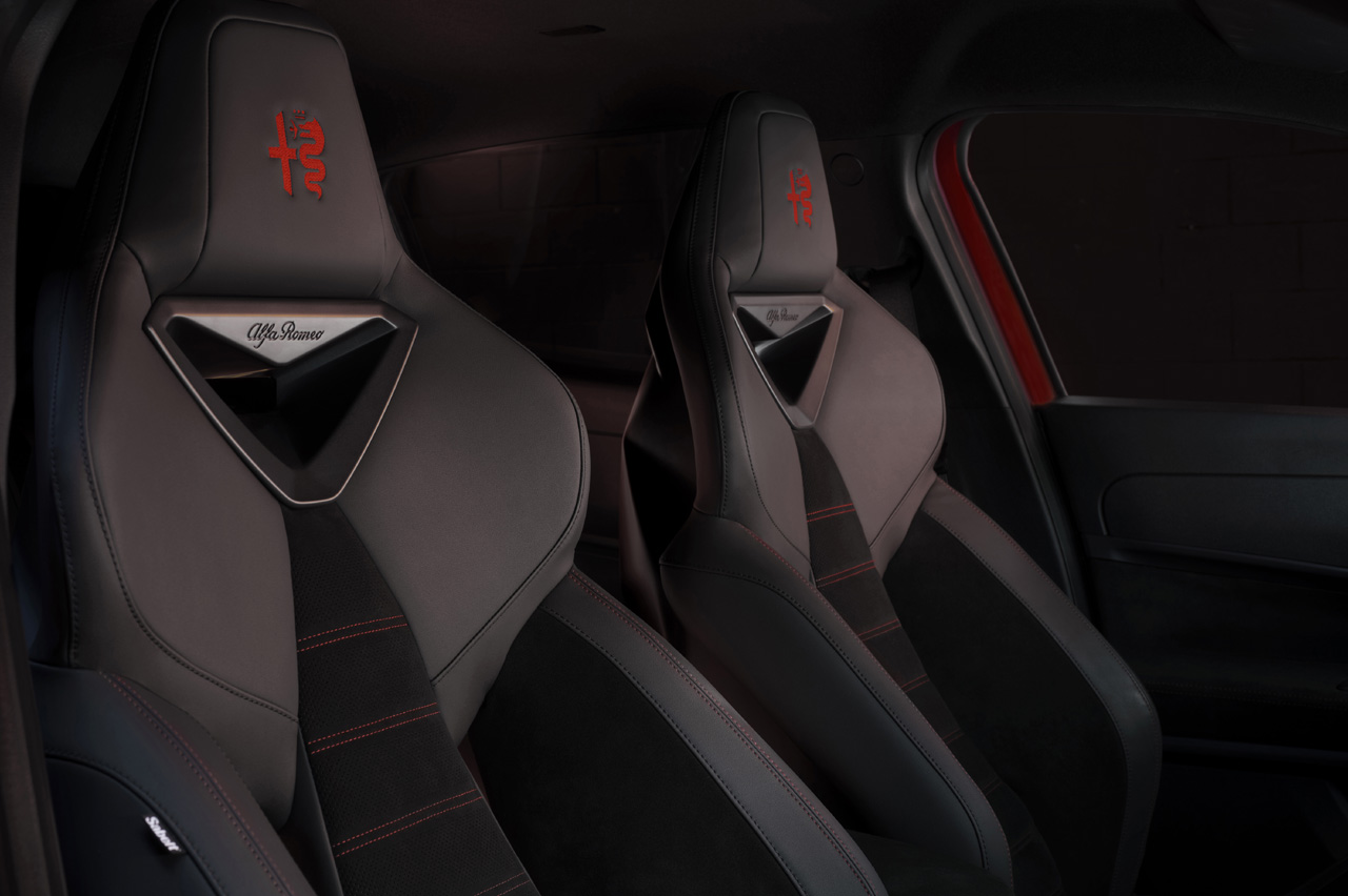 Todo está orientado ligeramente hacia el puesto de mandos y hay, como en el exterior, detalles estéticos muy trabajados. Fíjate en las salidas de aireación laterales, que además de tener el logo de Alfa Romeo en el centro lucen la forma del trébol de cuatro hojas; en esa consola central ascendente; o en esos maravillosos asientos Sabelt opcionales, que pediría sí o sí si me decidiera a comprar este coche.