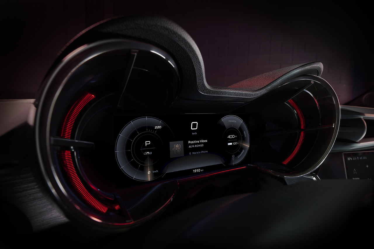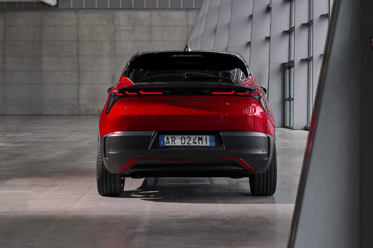 Me ha gustado mucho el frontal, con esas parrillas especiales que son todo un guiño a la historia de Alfa, pero sobre todo la vista lateral y la zaga. Tiene una línea de cintura muy poderosa, con unas formas que transmiten fuerza y dinamismo. Y la parte trasera me recuerda inevitablemente a ciertos modelos históricos de la marca de los años 60.