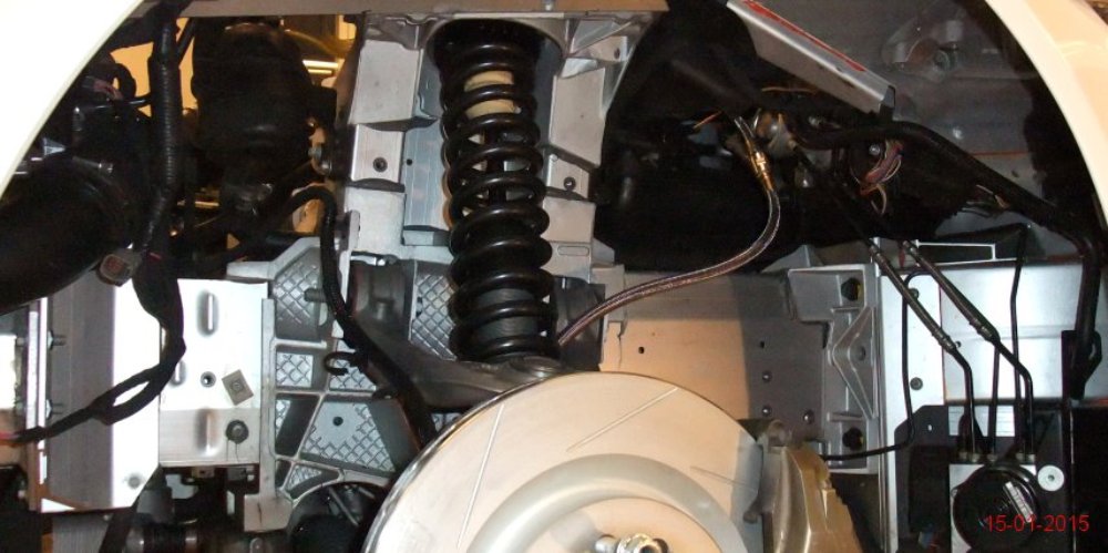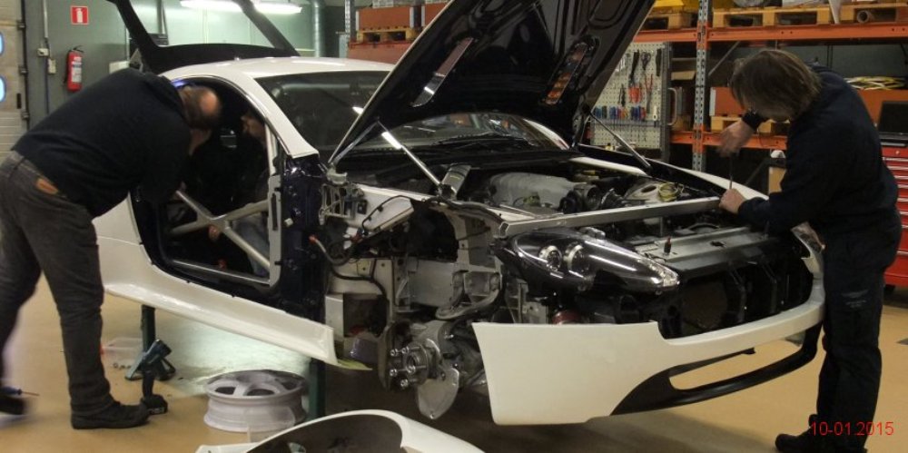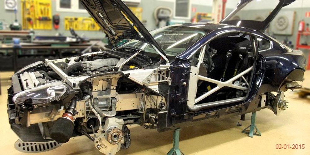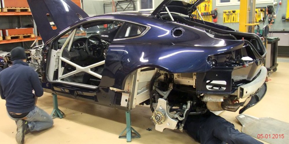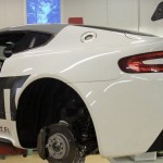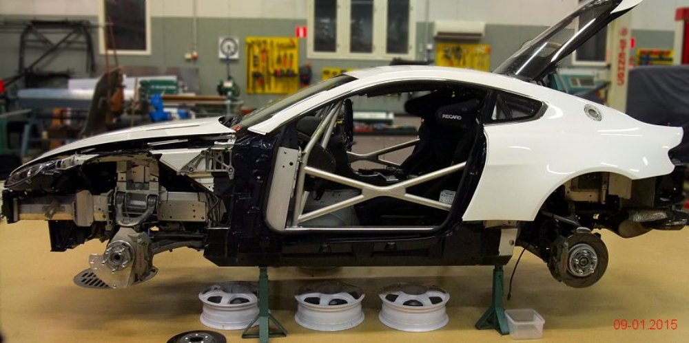 El siguiente paso es retocar la suspensión, la geometría de la dirección, la alineación de las ruedas, así como instalar un sistema de frenos mejorado y protección para el motor y todos los componentes periféricos. Una vez terminada la parte mecánica, el interior ya había sido aligerado para competir en la GT4 por lo que la mitad del trabajo ya había sido realizado previamente.