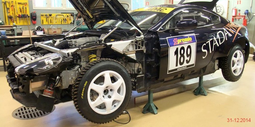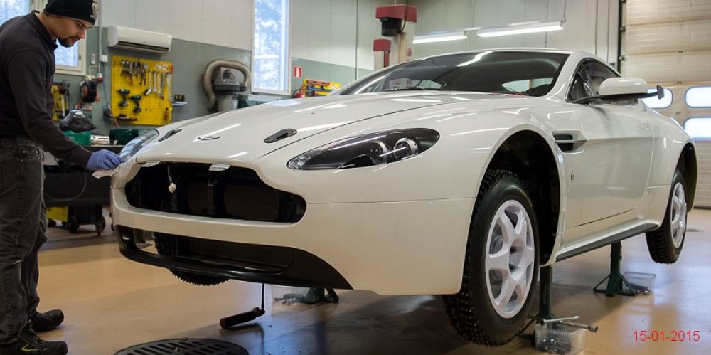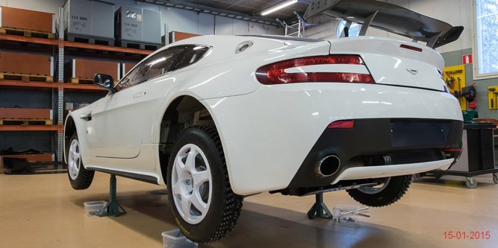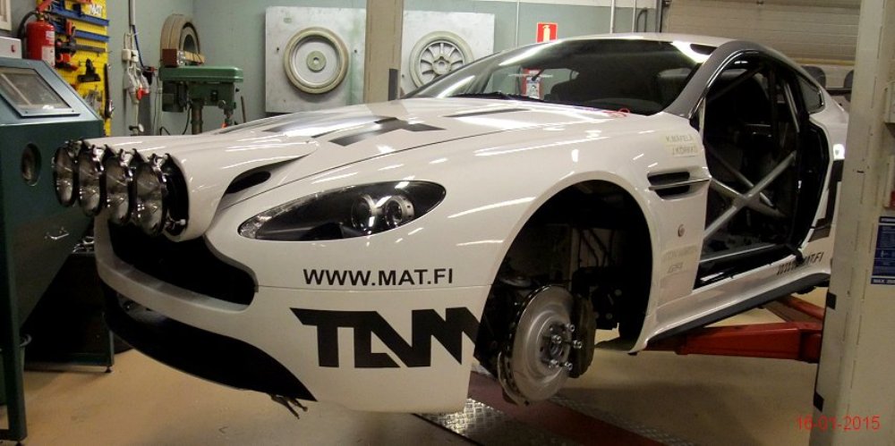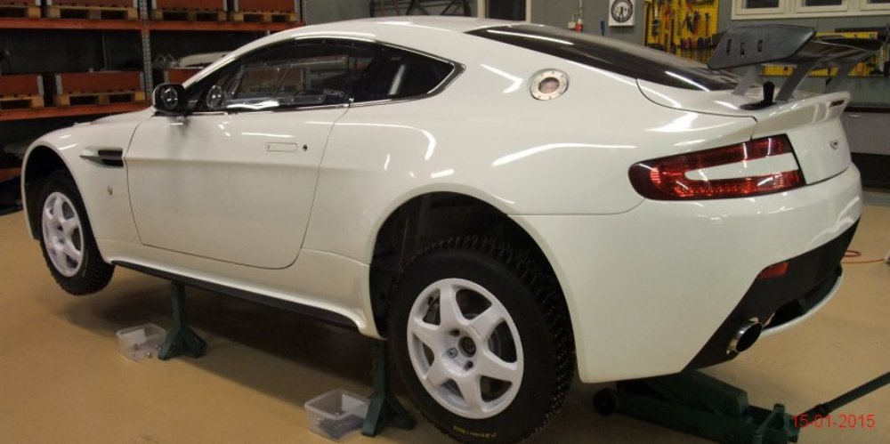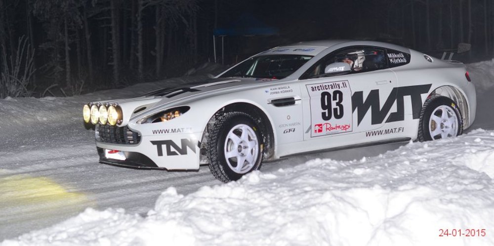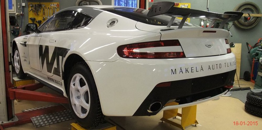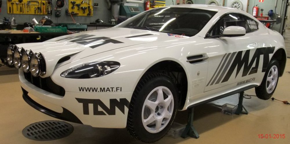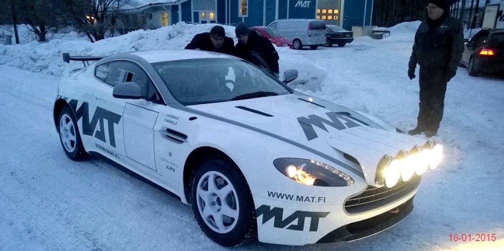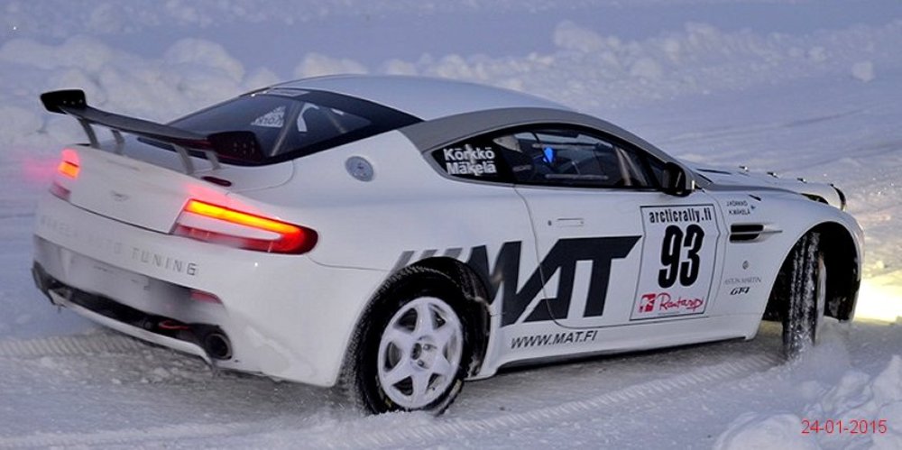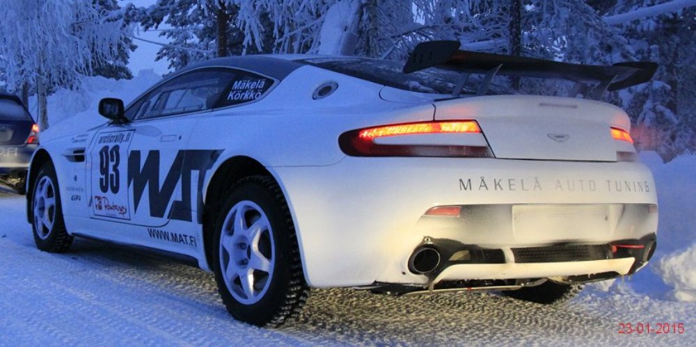 El Aston Martin V8 Vantage pasó de especificaciones para competir en pista a las necesarias para participar en rallyes sobre nieve o cualquier otra superficie en menos de un mes tras recibir la aprobación por parte de la FIA R-GT. Como apreciarás en la extensa galería de imágenes que adjunto en este artículo, los chicos de Mäkelä Auto-Tuning trabajan profundamente en el deportivo de Aston Martin y el resultado sigue siendo espectacular.