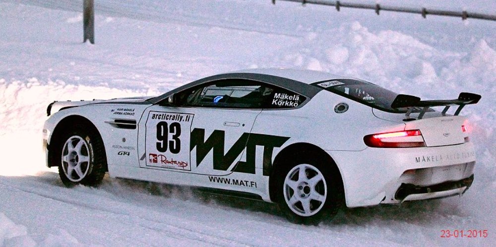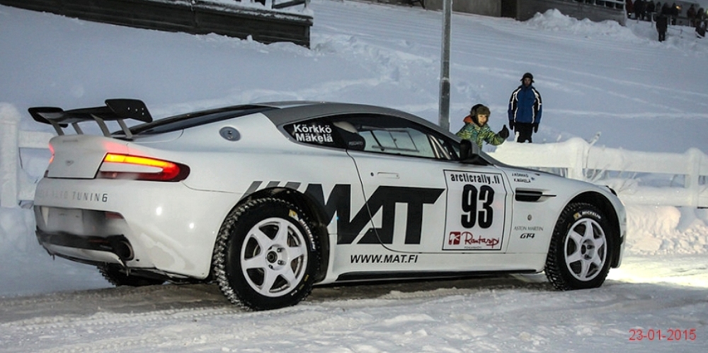 El Aston Martin V8 Vantage pasó de especificaciones para competir en pista a las necesarias para participar en rallyes sobre nieve o cualquier otra superficie en menos de un mes tras recibir la aprobación por parte de la FIA R-GT. Como apreciarás en la extensa galería de imágenes que adjunto en este artículo, los chicos de Mäkelä Auto-Tuning trabajan profundamente en el deportivo de Aston Martin y el resultado sigue siendo espectacular.