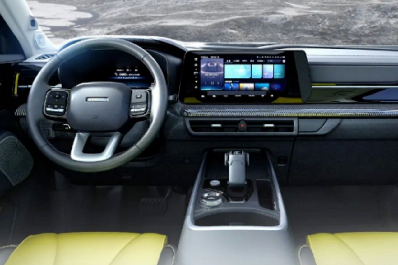 En el interior, luce un salpicadero minimalista con un diseño muy horizontal y la presencia destacada de una pantalla táctil de 12,3 pulgadas que proyecta el contenido del sistema multimedia. Curiosamente, el diseño del volante recuerda ligeramente al de un Land Rover. El equipamiento incluye sistema de sonido JVC con 18 altavoces, incluidos los de los reposacabezas, molduras que imitan la fibra de carbono y asientos de cuero con dos tonalidades.