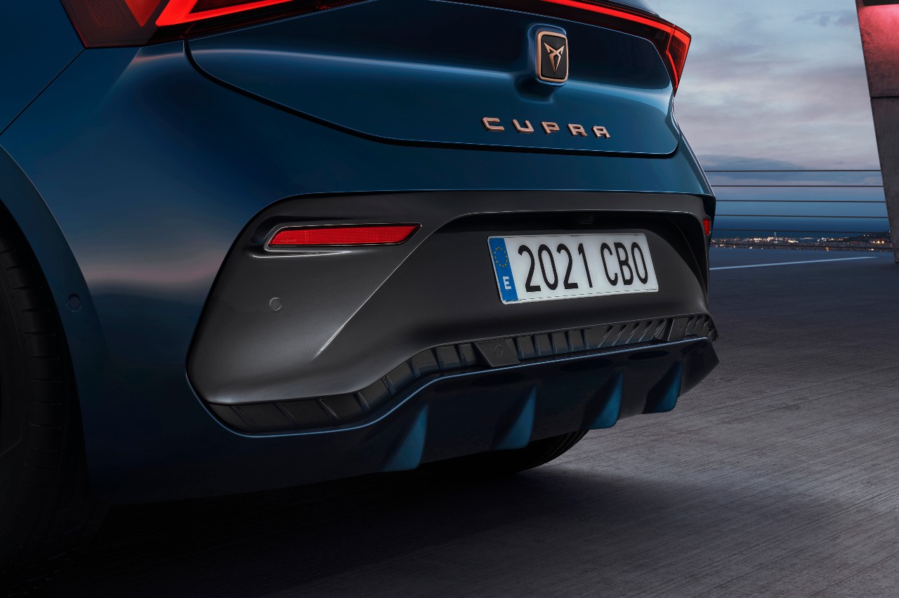El carácter deportivo característico de CUPRA está aquí presente de manera palpable, con un conjunto mucho más agresivo que el de su primo de Volkswagen. Los grupos ópticos delanteros son incisivos, el paragolpes está formado por una enorme toma de aire, calza llantas de 18 a 20 pulgadas, luce numerosos detalles en color cobre, la caída del techo estiliza mucho su figura y en la zaga destacan tanto los pilotos unidos entre sí, como el deportivo difusor.