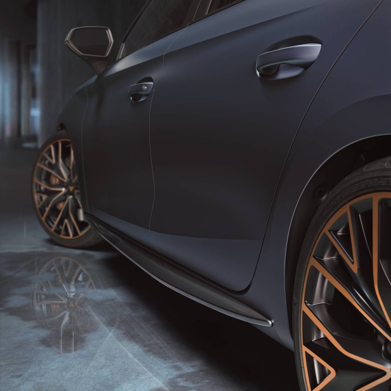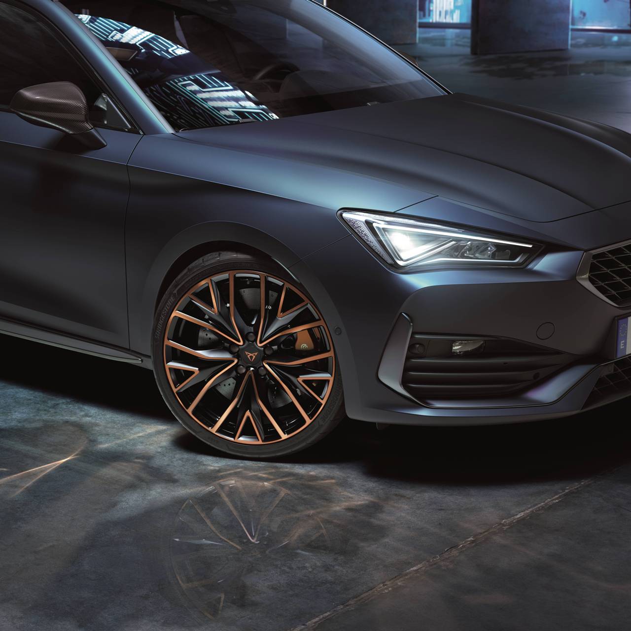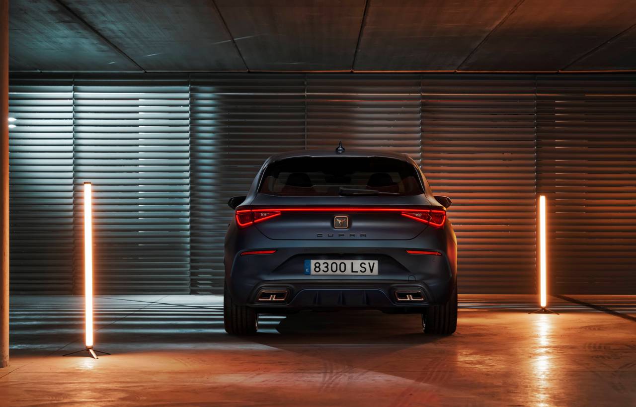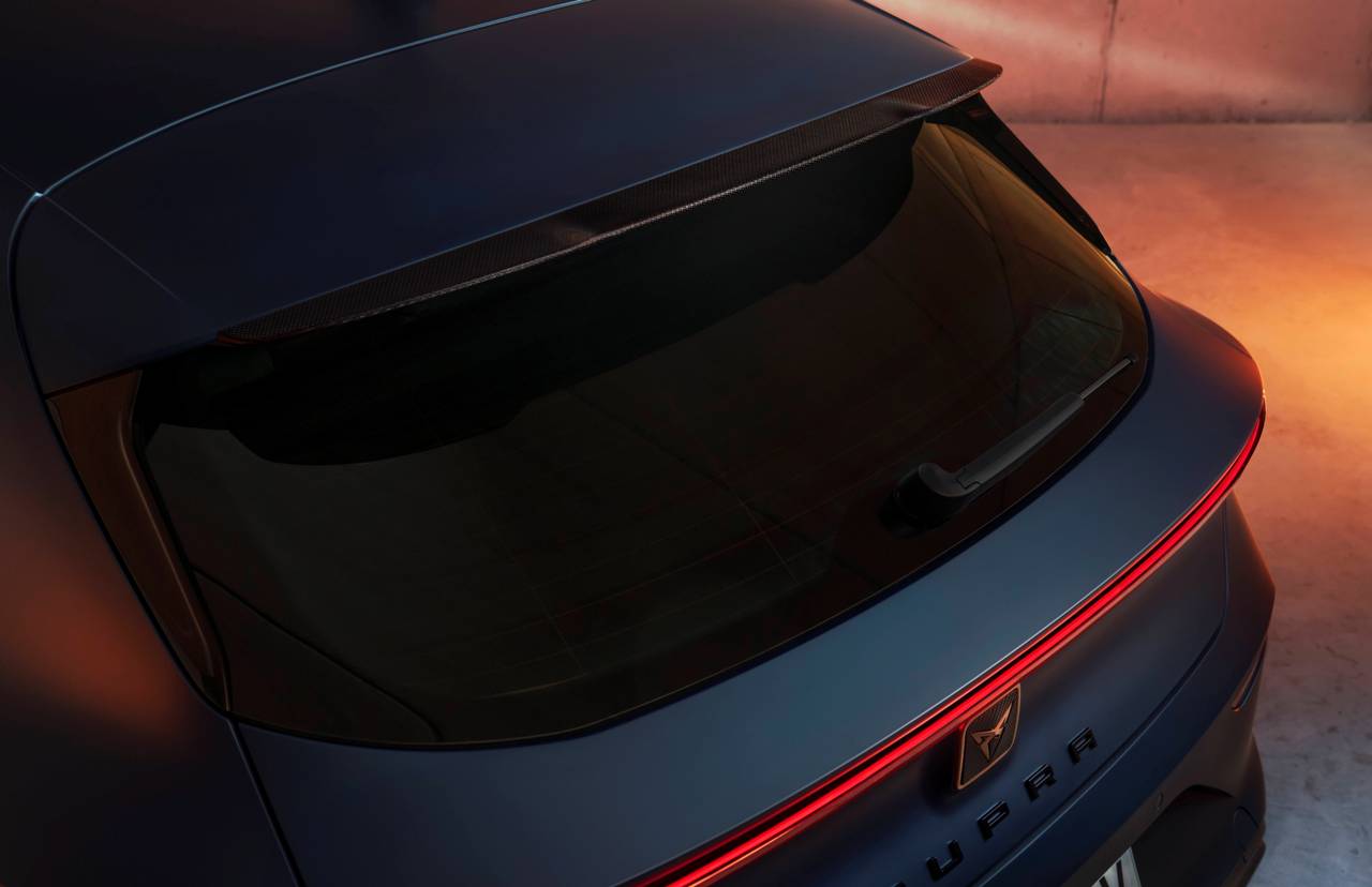 Creada como tributo a los modelos Cup de competición, esta versión especial del Cupra León (prueba) presenta un estilo exterior al que han incorporado unas llantas de 19 pulgadas en tonos negro y Copper, nuevos faldones laterales en color aluminio y un spoiler de fibra de carbono que no solo mejora la estética, sino que reduce las turbulencias, lo que supone un paso adelante en aerodinámica. Las carcasas de los espejos retrovisores están terminadas en color negro, pero de forma opcional pueden ser de fibra de carbono.
