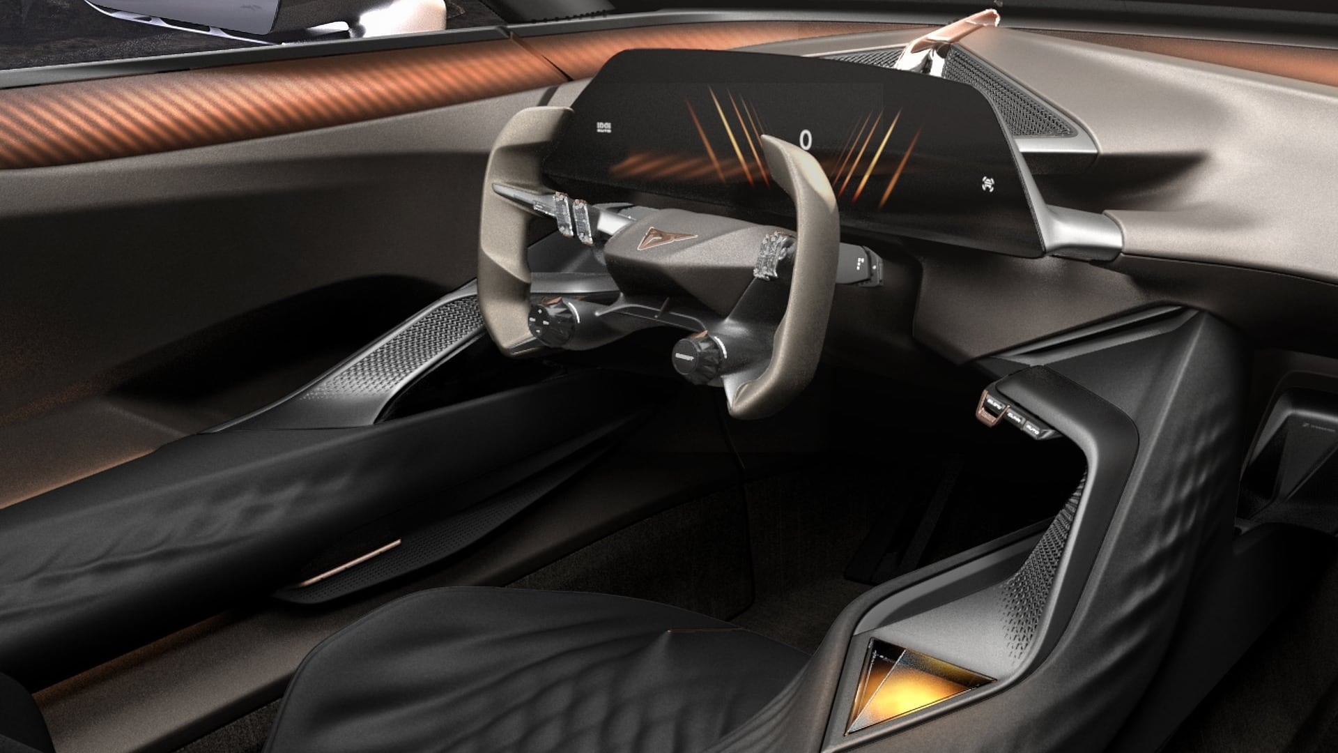 El habitáculo, al que se accede a través de unas puertas de apertura suicida -carece de pilar B- tiene una configuración de 2+2 plazas. Aquí se aprecia la idea en la que se basa la creación de este automóvil: 'No drivers, no CUPRA'. "El prototipo se presenta como la máxima expresión enfocada al conductor, al tiempo que proporciona una experiencia única que potencia las emociones de quien se sienta al volante".