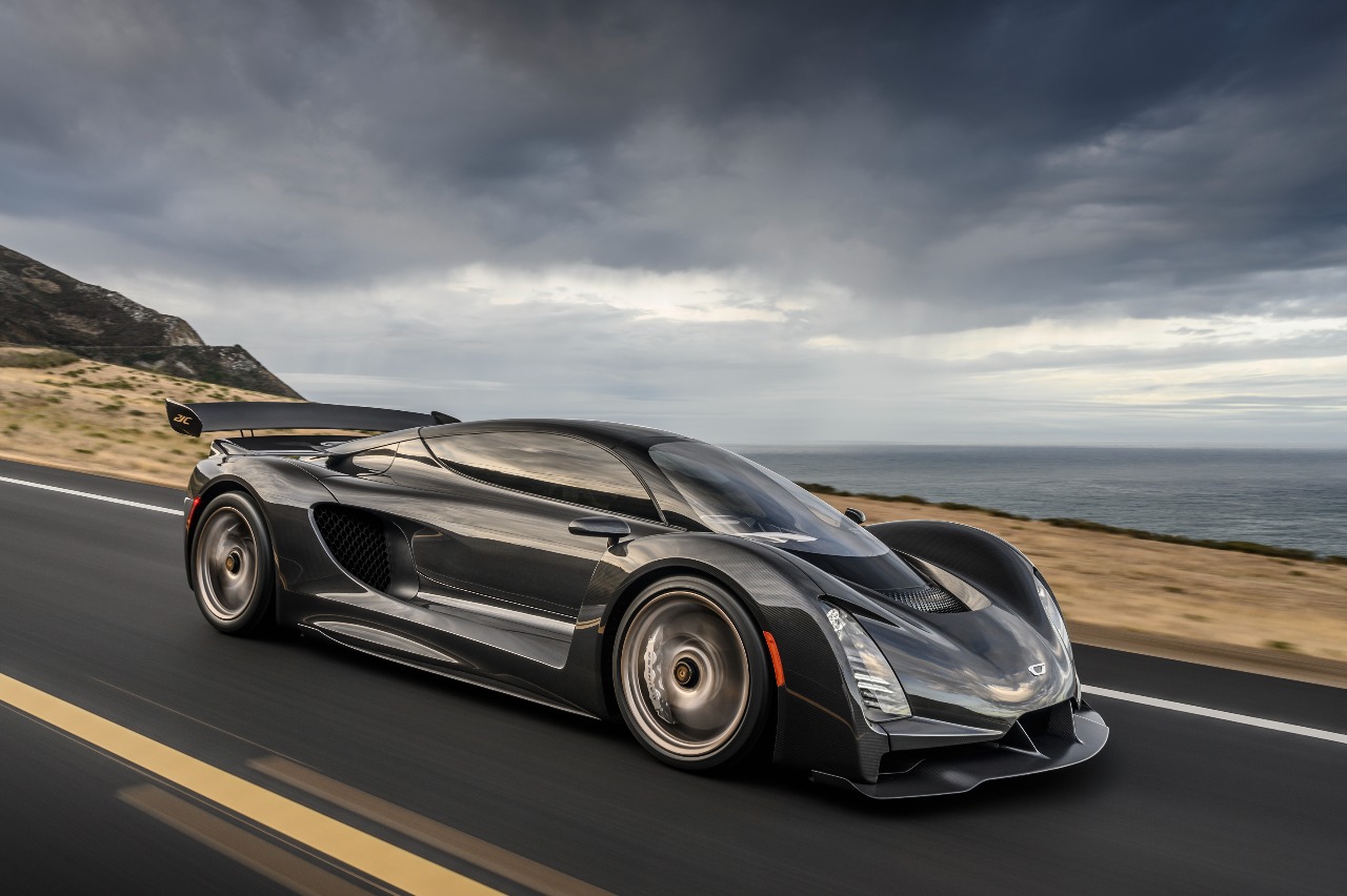 Además, dispone de una caja de cambios manual secuencial de siete velocidades. Y pesa 1.240 kg, por lo que su relación peso-potencia es prácticamente de 1:1. Para una mejor distribución del peso, tanto el piloto como el pasajero se colocan en posición central, uno detrás de otro, como en un caza. Todo esto supone que, según Czinger (pronunciado 'zinger', pues la 'c' es muda), sería capaz de pasar de 0 a 100 km/h en 1,9 segundos, de 0 a 400 en 21,3, y de 0 a 400 y otra vez a 0 en 27,1 segundos. Para ponerlo en perspectiva, el Bugatti Chiron lo hace en casi 42 segundos.